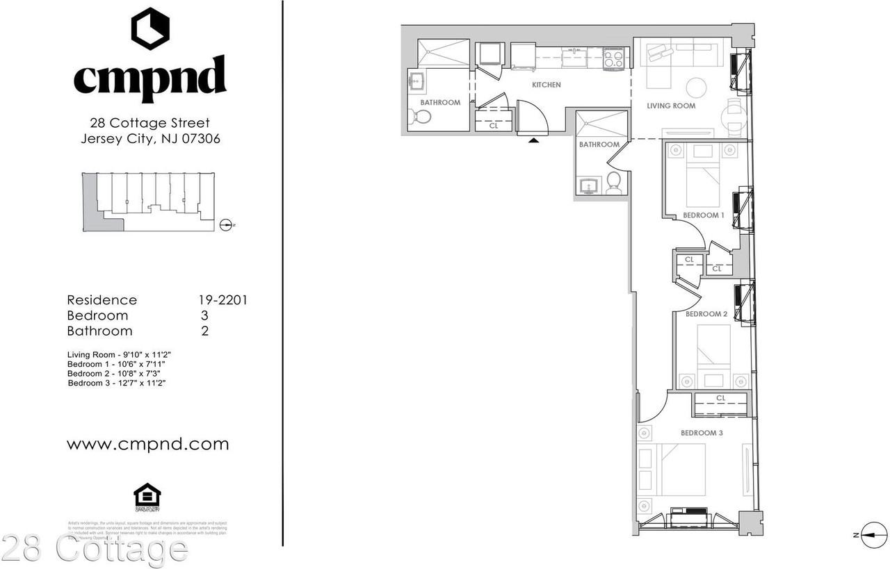 | 28 Cottage Street - Residence 2201 | 3 bed | 2 bath | 752 sqft | Residence 2201 - Impeccably crafted, CMPND sets a new standard for inspired living in downtown Jersey City. |