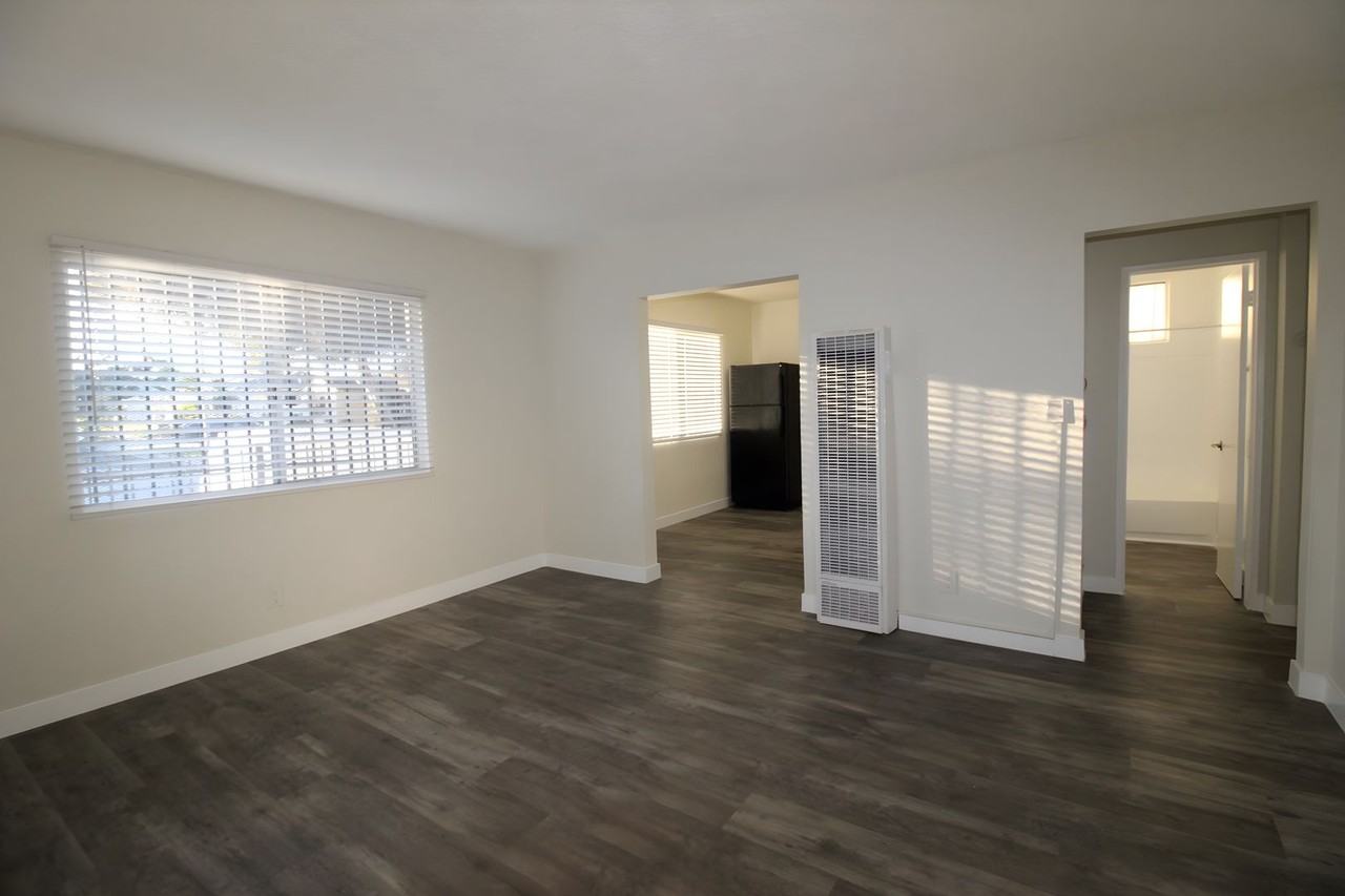 - Wood-like laminate flooring, fresh paint