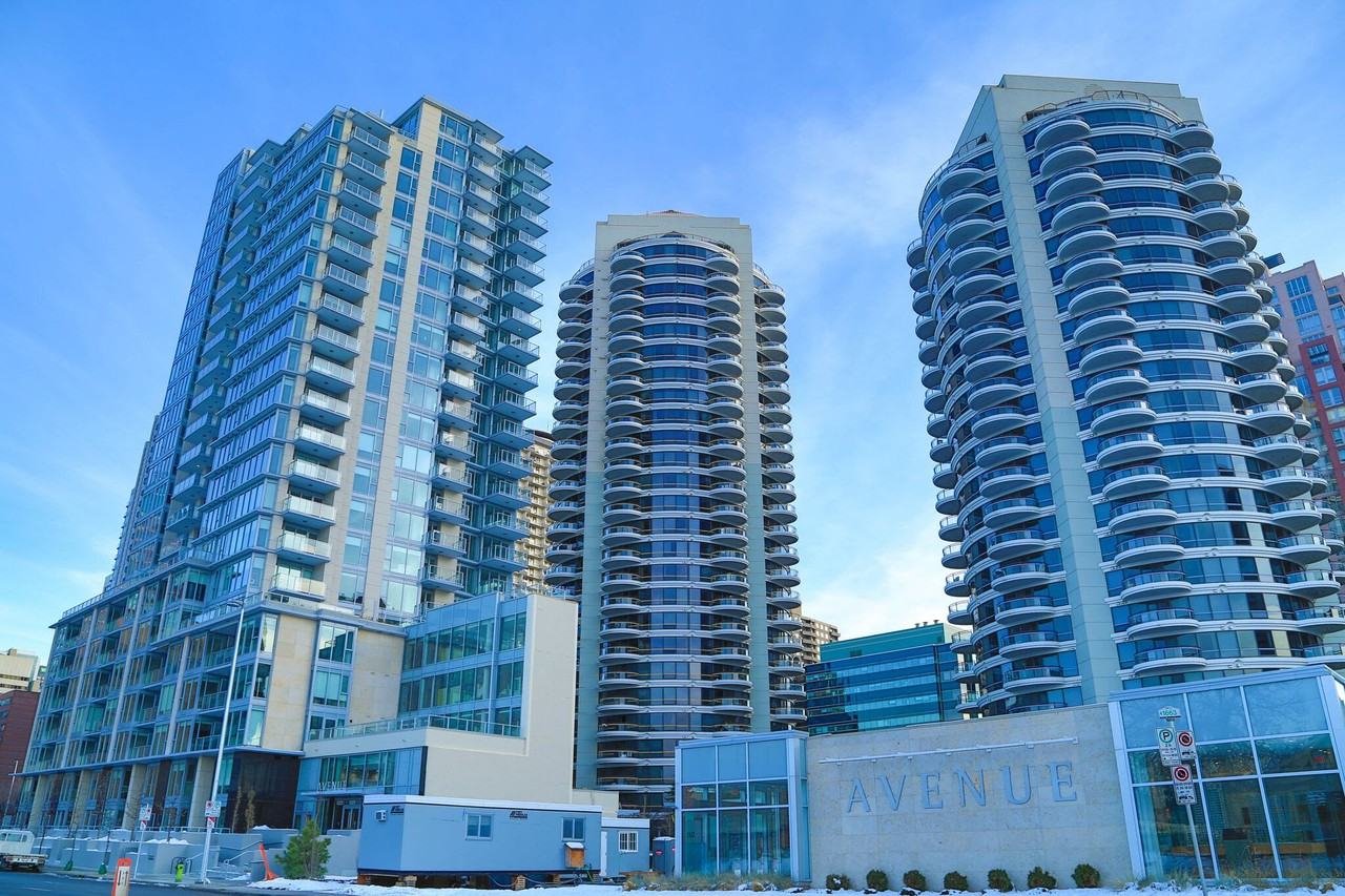 Avenue West offers exceptional design, stunning city and mountain views just steps away from the Bow river path along the West end of the Down Town core. This executive unit offers first ever Cressey Kitchens design with 48 inches of fully integrated refrigeration by Blomberg, gas cooktop, wall oven and built-in microwave. Enjoy heated porcelain tile flooring in ensuite and main bath, marble counter tops, real hardwood throughout, high ceilings, built-in roller blinds and a balcony with mountain views. Come check out the two walls of windows with Panoramic views of city and mountains. Virtual Tour: [https my matterport com show ?m=kQunjwdSKZK](https my matterport com show ?m=kQunjwdSKZK)