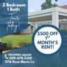 $500 off 1st month's rent on a 12 month lease (select 2 bedrooms only).