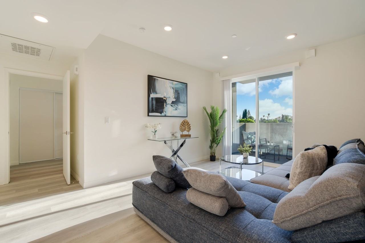 | 1BR/1.0BA | 1 bed | 1 bath | 671 sqft | $2,095–$2,150 /mo | 2 units available | Recent construction! This exquisitely built mid-rise features the latest in apartment amenities ALL at AMAZING VALUE. Wide open, spacious one, two, and three bedroom layouts. Beautiful, light vinyl plank "hardwood" style flooring. Unique Mid-century modern floating sink cabinets with elegant, textured finish (nice to touch!). Stainless steel appliances including dishwasher, double-door fridge, and microwave (with external vent!). WASHER & DRYER IN UNIT! Italian, soft-close cabinetry in the kitchens. Central A/C. LARGE BALCONIES with sweeping views! Electronic, bluetooth-capable MIWA smart locks for every apartment door. Gated, covered, garage parking INCLUDED! Community amenities include a first floor resident's lounge, a state of the art FITNESS CENTER, and a rooftop deck patio with sweeping, panoramic mountain views (amazing any time of the day or night)! Conveniently located near the 405 and 101 freeways. Easy to get around. These apartments are priced to lease, so do NOT delay!! START the APPLICATION PROCESS by clicking on the orange APPLY NOW button to the right. | |