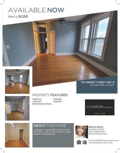 Located at 512b Market St, Rockford, IL 61107, USA, 510-512 Market Street has 3 bedroom units available.Other apartment buildings in or around Rockford include but are not limited to: 902 North Main Street, 5145 E State St, 950 North Main Street