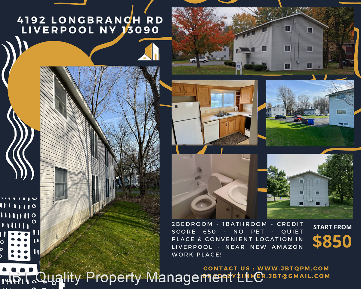 | 4192 Long Branch Rd - Unit 7 | 2 bed | 1 bath | 765 sqft | 4192 Long Branch Road - Unit 7 - 2 bedroom 1 bathroom apartment located in 4192 Long Branch Liverpool. It's in a great and convenient location in Liverpool. Utilities not included just water, Comes with fridge, stove garbage dispospoal, Gas furnace heat and center Air. There is some off street parking. Credit score 650 or better | ||