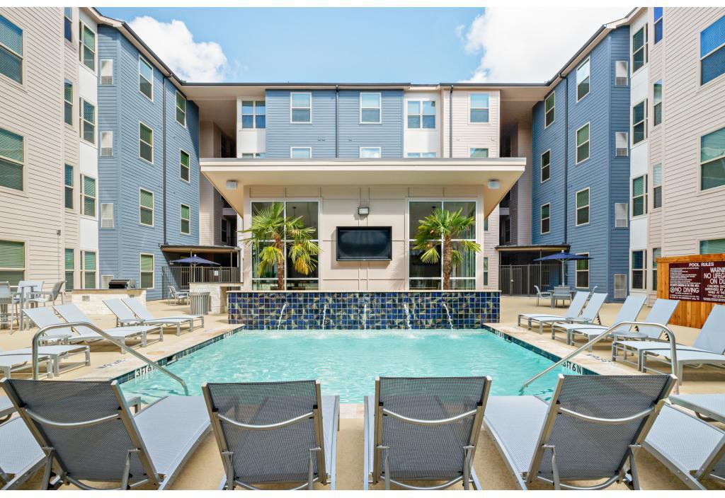Close to Texas A&M Campus, Pool with Sundeck, Covered Pavilion with 70" TVs, Outdoor Grill, Free Cable and High Speed Wi-Fi, Furnished Units with 49" TVs, Granite Counter Tops with Tile Backsplashes, Kitchen Island with Oversized Sink, Full-Sized Appliances + Washer/Dryer, Large Private Bedrooms with Walk-In Closets, Covered On-Site Parking, On TAMU Bus Route 15 (Old Army)