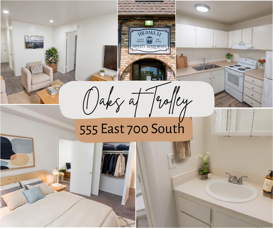 | 1x1 Middle/Top floor | 1 bed | 1 bath | 600 sqft | $899 /mo | 2 units available | Six weeks of rent free! This offer is for approved credit and with a 12 month lease or longer. Move in with in the next 10 days to get this offer! Reserve your new home for the sunshine season by reaching out to our skilled staff today! We offer self guide tours- showings on YOUR schedule! • Text or Call: 385 955-4704 or • E-mail: **** • Virtual Tour: https my matterport com show ?m=BbwanyMSoZG Make your new home at The Oaks at Trolley Apartments, where comfort meets convenience! These charming apartments feature walk-in closets, spacious bedrooms, large windows for great natural light, and open kitchens with plenty of cabinet space. The living and dining areas are thoughtfully designed for a comfortable lifestyle. Residents also enjoy access to a storage unit, covered parking (based on availability), 24-hour emergency maintenance, and an onsite laundry facility with six machines. Online rent payments and maintenance requests make life even easier. Located near Liberty Park, the 9th & 9th district, and downtown attractions like the public library, this community puts you close to restaurants, bars, shopping, and grocery stores like Whole Foods, Smith’s, and Trader Joe’s. You'll also have easy access to Trax and other public transportation, as well as fun venues for concerts and events. • Community Package: $191.99 including Internet (Once active), Water/Sewage/Trash, Parking (if available), Billing Fee, Liability Insurance, Pest Fee. Tenants responsible for all utilities. • Pet Package: Deposit for 1 pet is $500, deposit for 2 pets is $800 (fully refundable). Monthly pet rent per animal is $50. Please Note: Fees are subject to change, see leasing agent for the most current costs, fees, and availability of units. Content such as photos, videos, and tours may depict a similar unit. | |