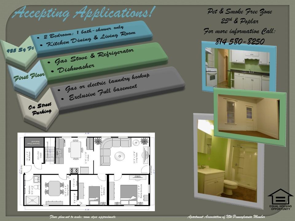 1st Floor flat comprised of 2 bedrooms, 1 bath, large eat in kitchen with range, refrigerator & dishwasher, dining & living rooms. Exclusive use of basement with hookups. Street parking steps from your front door. Shared patio & small yard. Tenants pay all utilities.
