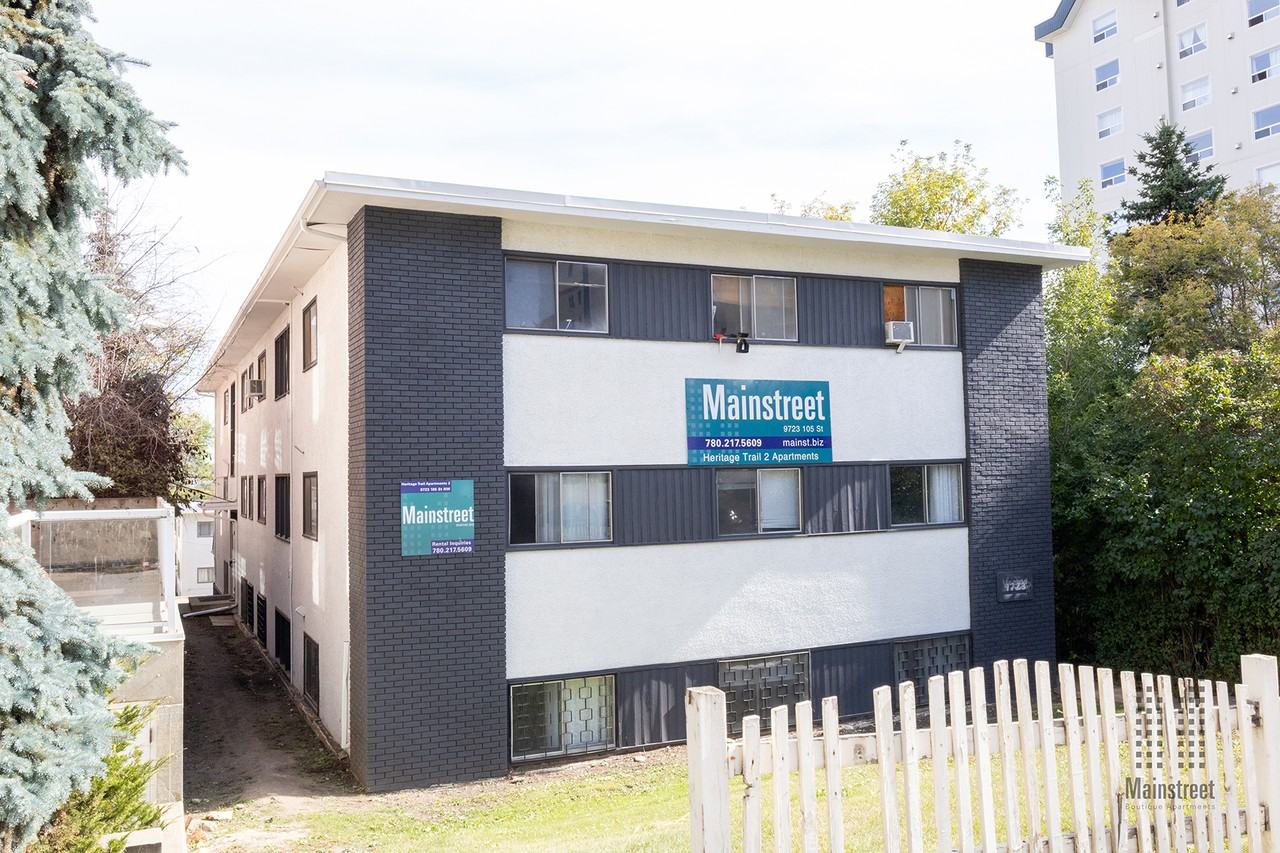 Property Description The best Downtown Edmonton rental apartments are affordable, pet-friendly, smoke-free buildings that you can be proud to call your home. Mainstreet’s Heritage Trail Apartments 2 are boutique suites that come internet-ready and cable-ready to have you connected fast; these suites boast either comfy carpet, classic hardwood, or high-grain laminate flooring and we even pay your heat and water bills to maximize affordability. We include your fridge, stove, window coverings, and we provide secured building entry and security patrols to keep things safe while also providing onsite laundry facilities to keep things convenient. This is a low-density building as well, meaning you’ll enjoy more space to yourself with fewer neighbours and less noise, great for lifestyle. These suites are an amazing deal, so [apply online now](https secured-forms com reply-to mainstreet rental-application) and get yours before they’re all gone! 1 Bedroom Amenities - Laundry facilities - Convenience store - Fridge - Stove - Carpeted floors - Hardwood floors - Individual thermostats - Cable ready - Window coverings - Public transit - Parks nearby - Schools nearby - Internet ready - No Smoking allowed - Laminate floors - Secure entry - Patrol Security - Secure entry Utilities Heat, Water Community Mainstreet’s Heritage Trail Apartments 2 are apartments for rent in Downtown Edmonton which are centrally located. Close to major bus routes, the Alberta Legislature, walking distance to Downtown Office core and only steps away from the beautiful River Valley. - Drive to groceries at Save-On-Foods in 5 minutes - Drive to Oliver School in 8 minutes - Drive to Centre High Campus in 5 minutes - Drive to MacEwan University in 5 minutes - Drive to University of Alberta in 5 minutes Affordable apartments in a great location along Edmonton’s historic Heritage Trail. Don’t let someone else take your new home, [apply online now!](https secured-forms com reply-to mainstreet rental-application) Suite availability, rental rates, included utilities, and incentives are subject to change without notice. Security deposit amounts may vary based on credit history, rental history, and risk assessment. Rental rates are net and include applicable incentives, based on a one-year lease term. Incentives apply to new applicants only and cannot be combined with other offers. Suite images are for reference only; actual suites may differ. Valid renter's insurance is required for all residents. Additional conditions may apply.