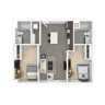 | 2C | 2 bed | 2 bath | 748 sqft | $1,574 /mo | Our two-bedroom, two-bath apartments feature comfortable vinyl and carpet flooring throughout the living areas and bedrooms. The spacious kitchen includes a modern island, refrigerator, stove, dishwasher, and microwave, perfect for cooking and entertaining. Each home also offers an in-unit washer and dryer, generous closet space, and a thoughtfully designed layout for comfortable living. |