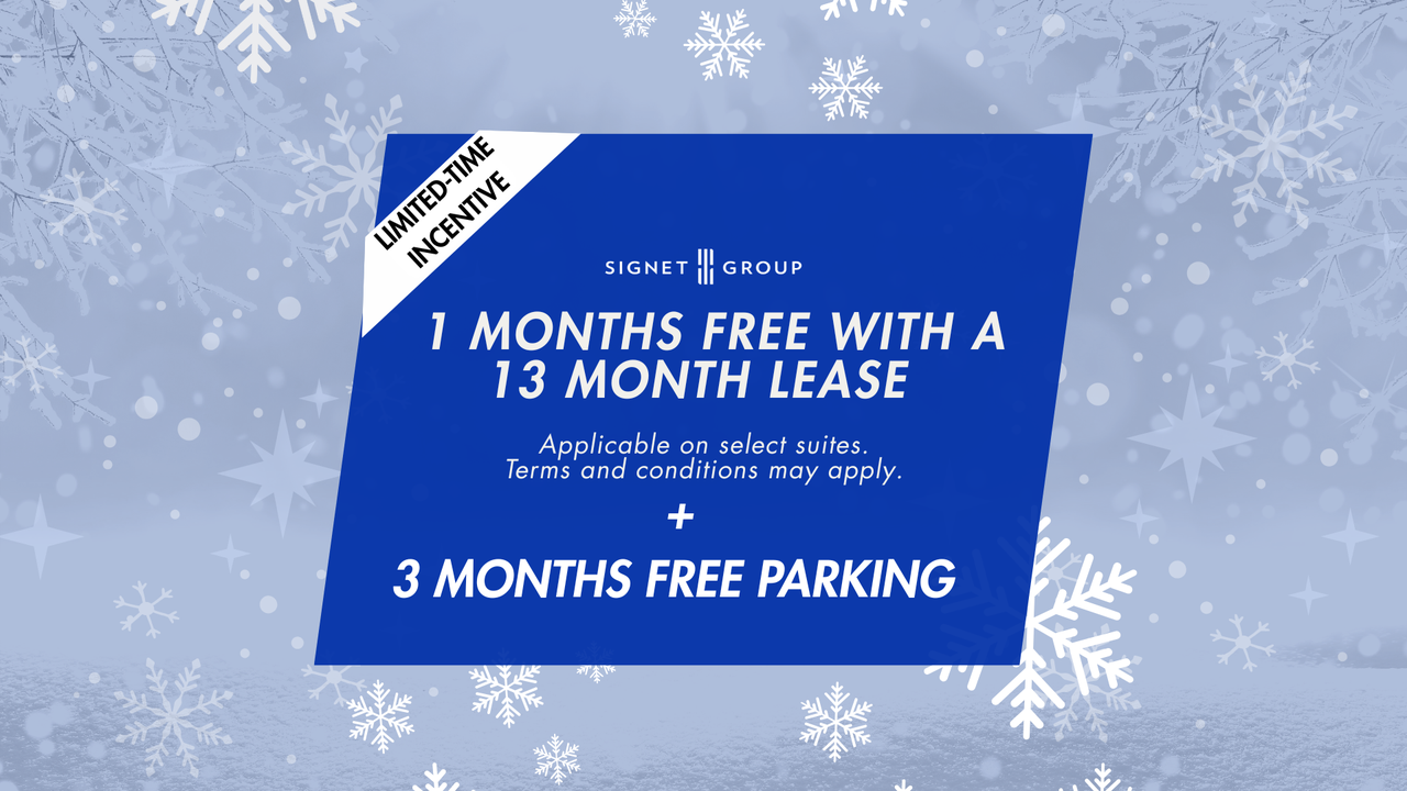 Limited Time Offer: Get 1 Month Free with a 13 Month Lease + 3 Months FREE Parking! *Offer valid on select suites. Additional terms and conditions may apply.