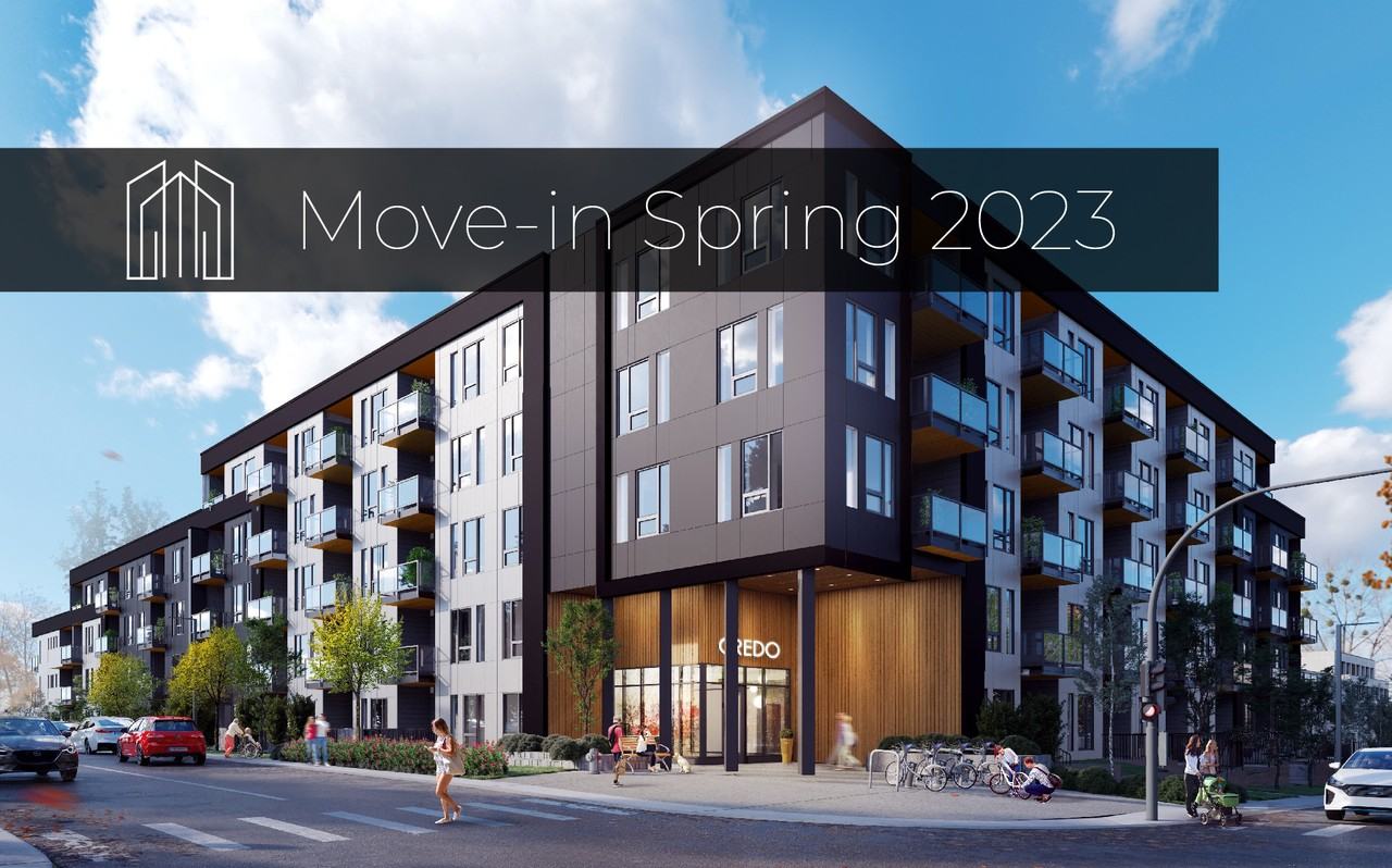 Credo is home to 125 designer suites, including Studio, 1 Bedroom, 1 Bedroom + Den, and 2 Bedroom pet-friendly apartments. Open concept living, luxury vinyl plank flooring, quartz countertops, stainless-steel appliances, nine-foot ceilings, and black-out blinds in every bedroom are just a taste of what you can expect in your new home at Credo. Features at Credo include a community lounge and kitchen, outdoor patio, fitness studio, underground parking, dog run and wash, EV charging stations, bicycle wash and parking, secured storage, and more! MOVE-IN SPRING 2023 Visit credocalgary. ca to learn more.