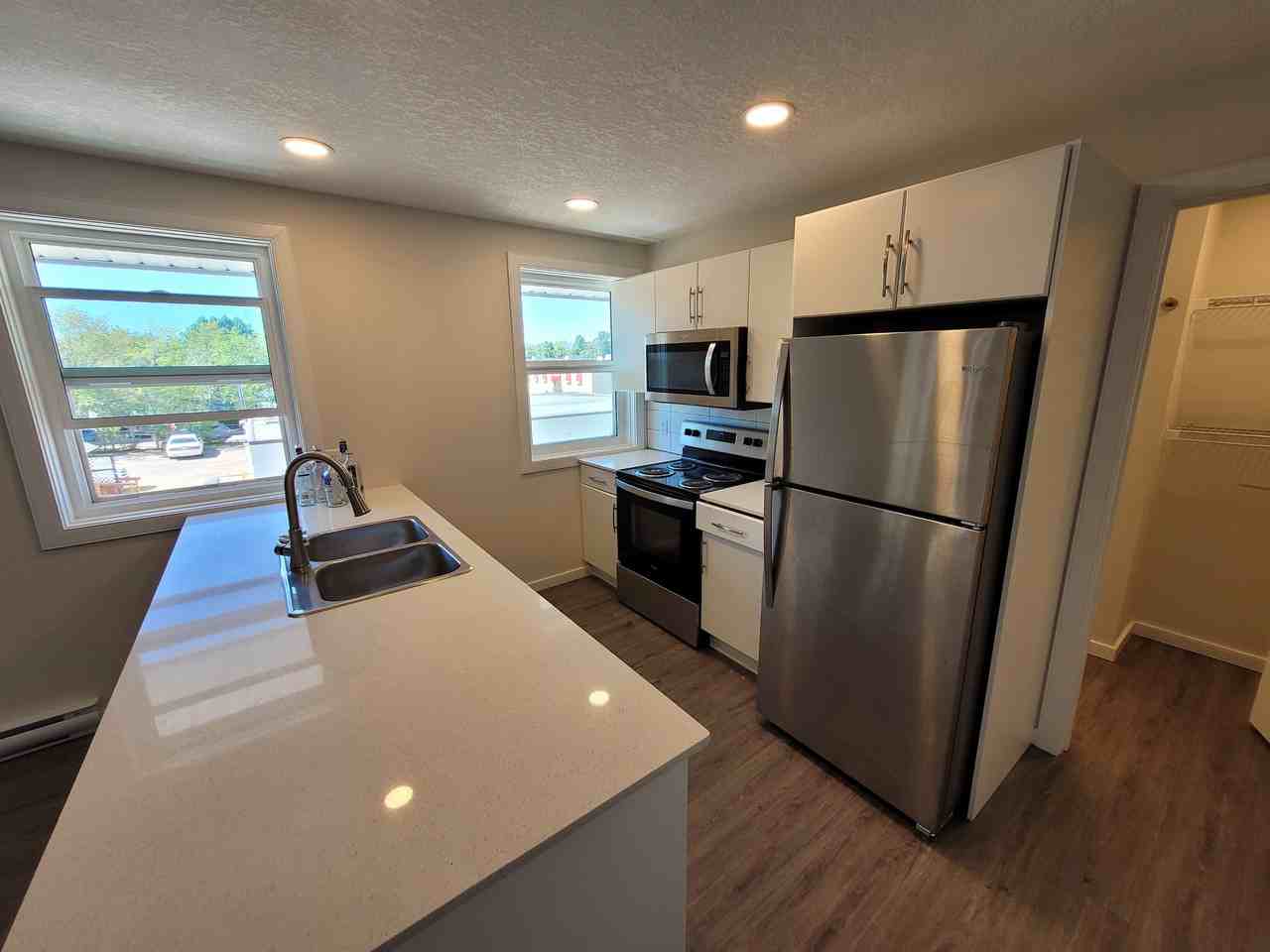 Bachelor and One Bedroom Available Now Brand new beautiful bachelor apartments in Wetaskiwin. Vinyl plank flooring, quartz counter tops, fridge, stove and dishwasher included. Building also completely renovated with a big coin operated laundry room. Water included as well as one parking stall, extra stalls also available. Small pets welcome for $25 per month. Rent and damage deposit are: Unit 8 - One Bedroom $1190