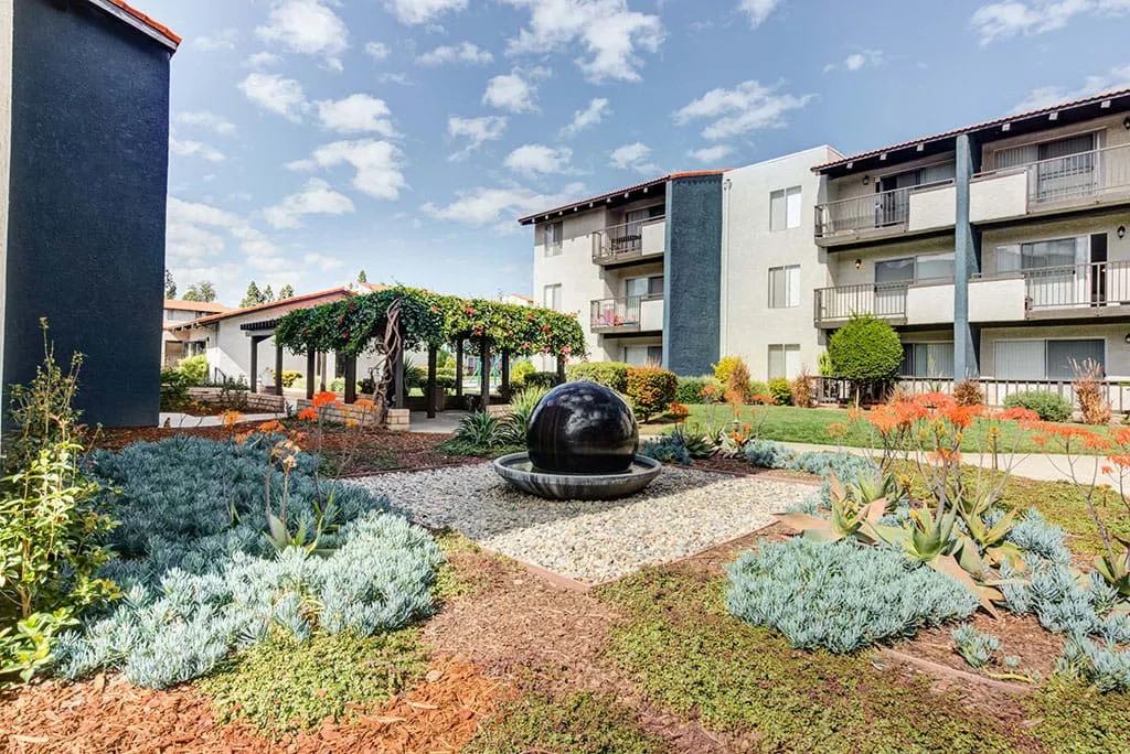 Waterstone's lush and newly updated landscaping and tranquil water fountains provide refuge from hectic city life. Our pet friendly apartments in Chatsworth, CA offer impeccable amenities like our soothing spa and state-of-the-art fitness facility, outdoor fitness area, comfortable seating areas around our outdoor fireplace or fire pit, which all provide relief from the daily stresses of living in the urban desert located near the prime hot spot of Los Angeles. Your apartment home, complete with air conditioning, decorative paint schemes, and a private patio or balcony, provides a pleasant contrast to the outside hustle and bustle. Waterstone is not just a home, it is your personal oasis. Call today to schedule a tour!