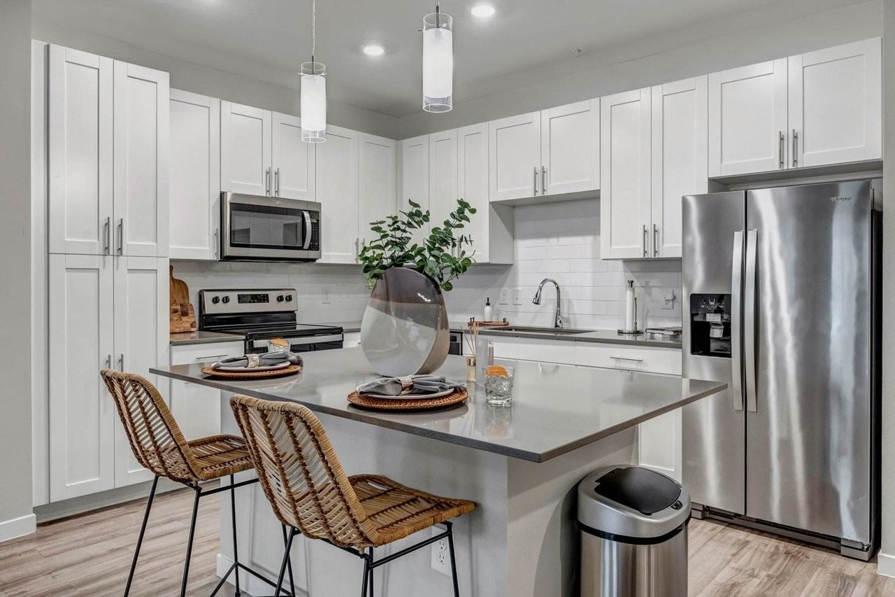 Our spacious 1, 2, and 3-bedroom apartment homes offer sophisticated garden-style architecture with natural light, quartz countertops, stainless steel appliances, expansive closets, private balconies, detached garages, Smart Home technology, and sound-insulated walls for ultimate privacy.