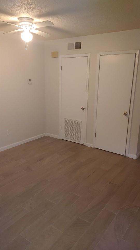Our apartment homes have been completely renovated with beautiful floors, kitchen appliances, countertops, and cabinets. Bedrooms have large closets/storage; rooms have ceiling fans and large windows for ample natural lighting. Each unit has a porch or balcony, a private attached laundry/storage room with washer and dryer hookups, and easily accessible parking. Water, sewer, and trash fees are included in monthly rent.