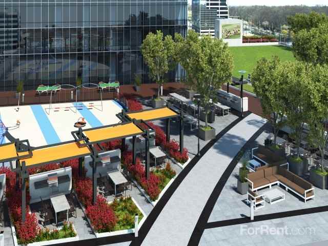 24/7 doorman & concierge, Internet Caf & WiFi thoughout all common areas, Cutting-edge Fitness Center, Cardio/Aerobic Room & Yoga/Pilates Studio, Spa Lounge with Sauna Room, Eighty-one-foot Infinity Pool, Outdoor Sports Court for basketball and volleyball, Outdoor Movie Theater, Massage Treatment Room, Courtesy shuttle to NYC subway and ferry, Sophisticated Golf Simulation Facility, Pet friendly with a covered dog run and pet spa