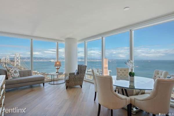 Stunning Bay views from this corner two bedroom two bath at the Harrison designed by Ken Fulk. The residence features floor to ceiling windows, a private deck, diagonal planked wire-brushed Siberian Oak wood floors in the living area, unlacquered brass hardware throughout, and Cloud White carpet in bedrooms. The custom kitchen offers Studio Becker Ash Molina cabinetry, polished white slab Carrara marble countertops, Waterworks fixtures, Sub-Zero integrated refrigerator, and Bertazzoni range. The luxurious, spa-like bathrooms feature chevron honed-finished olive porcelain floors, custom vanities with polished white slab Carrara marble countertops, custom brass and casted-glass sconces, and Waterworks fixtures. One car valet parking, storage and wine locker.