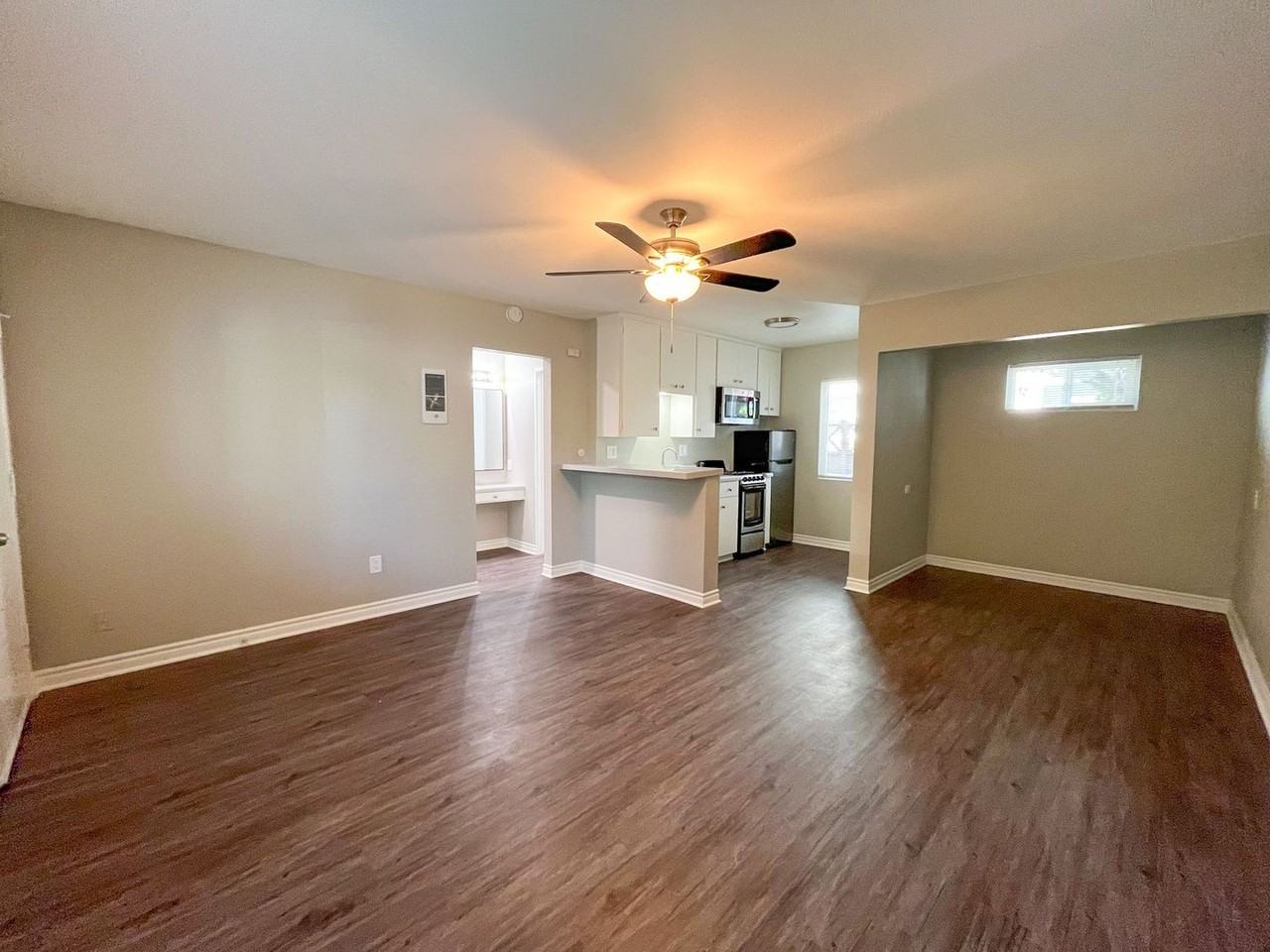 | 0BR/1.0BA | Studio | 1 bath | We are pleased to offer this studio apartment in the heart of Pacific Beach. The exterior of this property has recently undergone several upgrades including: full exterior paint, including the unit front doors along with new windows and exterior lighting and and security screen doors. If you want to be the first to live in a newly upgraded apartment this is your opportunity to join the Villa Pacific community, As you enter the unit you will find vinyl plank flooring carries through the entire floor plan of this apt. Accented with a warm paint color throughout. The main living space offers a ceiling fan and electric heat. The kitchen offers all new stainless steel appliances including refrigerator, stove/oven and full size microwave. There is a built in pantry. Upgrades include new fixtures, faucets and hardware and resurfaced counters and sinks. The bathroom is equipped with new fixtures, resurfaced tub/shower and new toilet. There is a large closet off the living room and a dresser and desk is included. The location is a 10++ Leave your car and walk to the beach! When you come back from the beach you can rinse off in the common area sand rinsing station! You can actually walk to the gym which is located steps across the street. Visit your local small business shops, restaurants and nightlife. FWY close to 5 and 8 One parking space included. Resident pays pro rata share of water and trash. On site laundry Small pets welcome up to 25lbs with deposit and pet rent. Call for a viewing: 855-229-7368 Ext 3 |