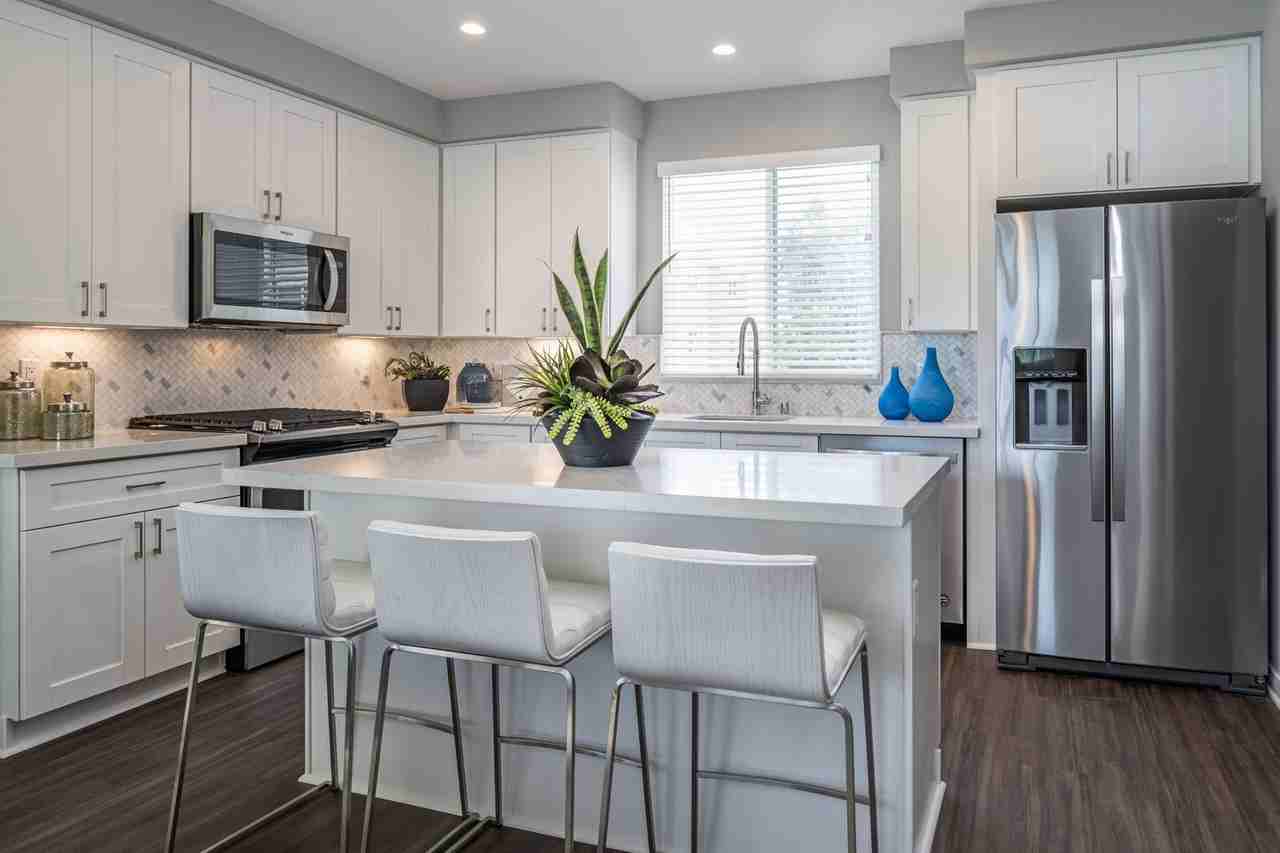 - Quartz countertops and marble backsplashes