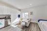 These apartments include private kitchenettes with quartz countertops, abundant built-in storage, vinyl flooring, and large double-paned windows with abundant natural lighting. The courtyard has a Luxor One package system to make deliveries a breeze. This is a great opportunity to live in a stylish community without being far from all of the best that