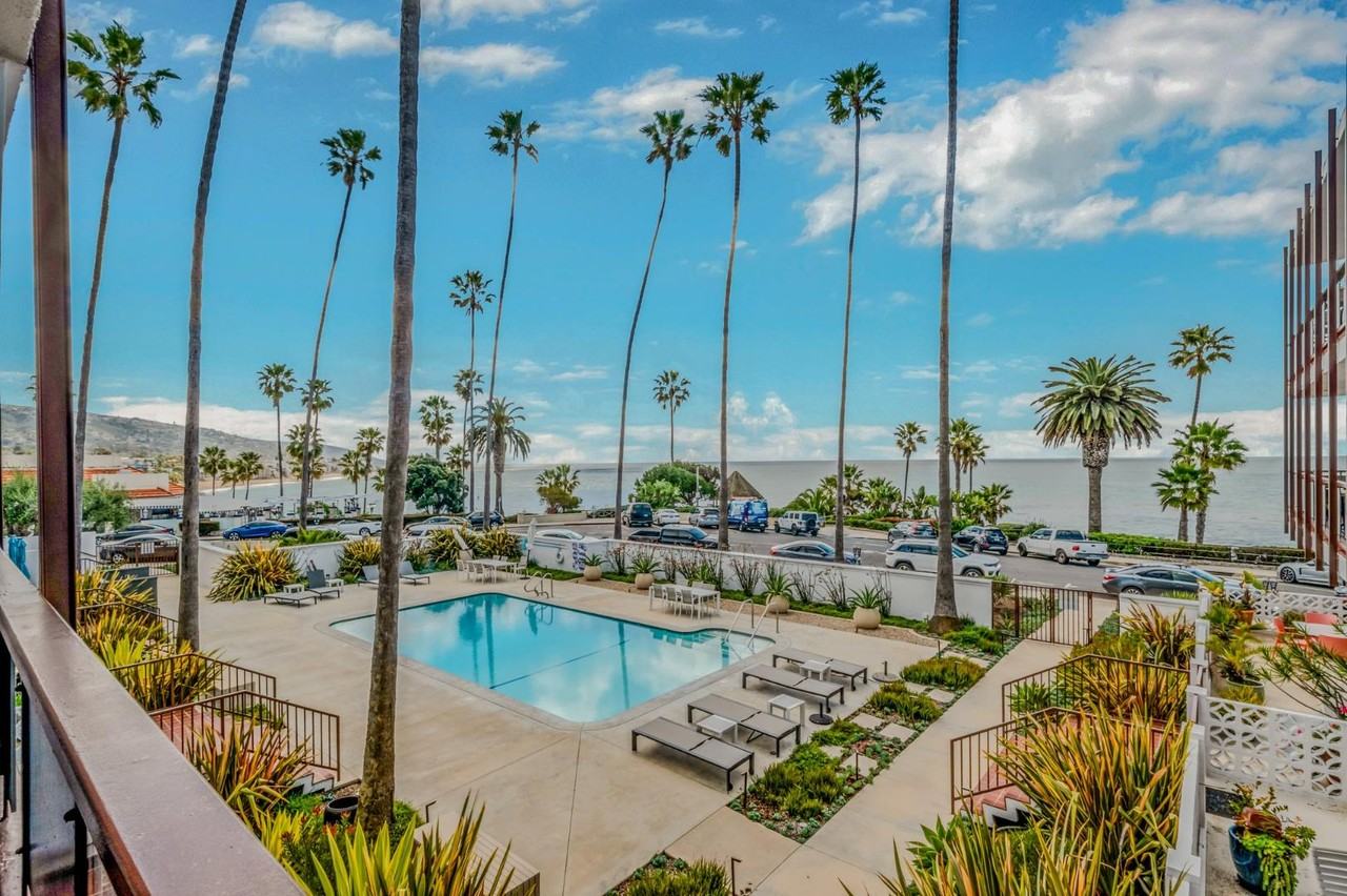 Built in the late 1950s, 330 Cliff Drive was designed by renowned mid-century modern architect John C. Lindsay. The building sits on the cliffs overlooking main beach with all units featuring ocean views. Residents at 330 Cliff enjoy the communal salt water pool, spacious patio area, and built-in BBQ. In the coming months the building will be adding a conference room for resident use, secure storage for bikes and beach toys and EV chargers in the garage.