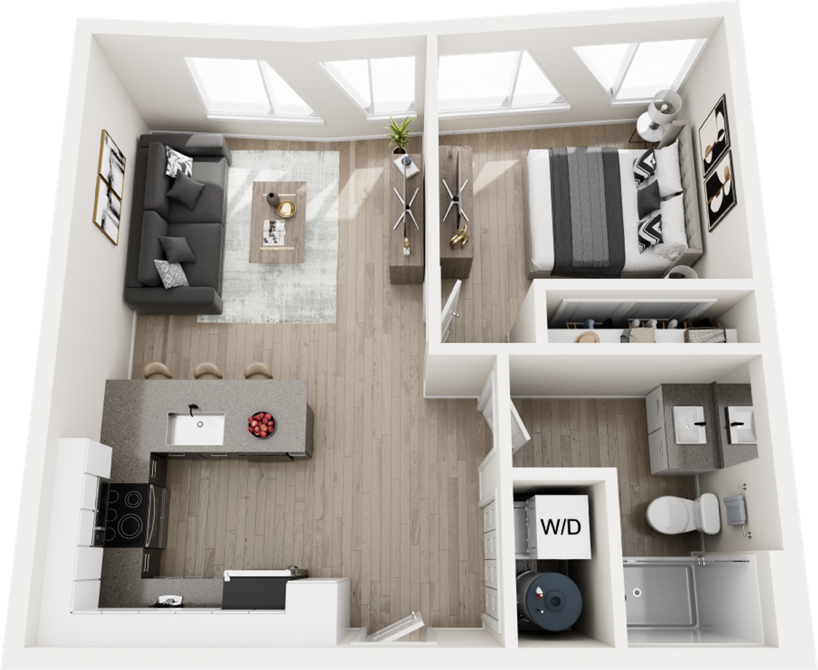 | Star 1C | 1 bed | 1 bath | 663 sqft | $2,005–$2,045 /mo | 2 units available | Perfectly scaled for modern city living, our one-bedroom residences offer a refined retreat in the heart of the Roosevelt Road district. These brand-new apartment homes feature open-concept layouts designed to maximize space, light, and functionality. Luxury vinyl plank flooring flows throughout, while high-end kitchens showcase quartz countertops, custom cabinetry, and stainless steel appliances. Expansive windows bring in abundant natural light, creating a bright and energizing atmosphere. Each home includes an in-unit washer and dryer for added convenience. Discover your New Home with Quartr Living! - Zero Deposit™ Community*: Enjoy the convenience of moving in without the hassle of a traditional security deposit. Apply today to see if you qualify for this exclusive program! - Pets Welcome*: At our communities*, we’ve partnered with Pet Screening to make pet ownership more inclusive. With this program, traditional breed restrictions are no longer an issue, ensuring all furry friends are welcome! - 24-7 Emergency Maintenance: Day or Night, Rain or Shine, our dedicated maintenance team is there to ensure emergency maintenance related items are taken care of! - Resident Portal: Our online resident portal makes life easier! You can pay rent, sign lease documents, purchase liability and renters’ insurance, message our team, and submit work orders, all in one convenient place. FEES: One-Time Fees $300.00 Administrative Fee $65.00 Application Fee $500.00 Security Deposit (starting at, on approved application) Monthly Fees $25.00 Resident Benefits Admin Fee $95.00 Tech Fee $25.00 Valet trash Fee $5.00 Pest Control Reimbursement Optional Fees: $15.00 Liability Insurance Coverage * For more detailed information on the Zero Deposit™ program, Pet Screening, and other aspects of your potential new home, visit our website. | |