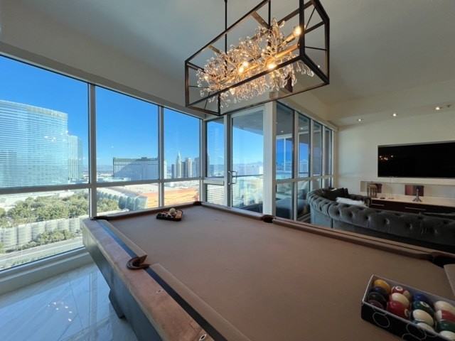 Lavish and exquisite high rise condo with spectacular strip views. This tastefully decorated 2 bedroom unit is located on the 21st floor directly facing the city center/strip. Custom touches throughout such as stainless steel profile appliances, luxury washlet toilet, gorgeous high end marble flooring, meticulously detailed kitchen backsplash, motorized window blinds, and stunning custom cabinetry throughout. Comes complete with luxury amenities such as valet parking, 24 hour security and concierge, community pool, spa, fitness room, racquetball court, pet park including a his/hers indoor spa/sauna/relaxation room. Luxury living at its finest! Inquire now for more details.