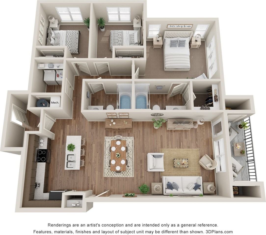 | 3B | 3 bed | 2 bath | 1,252 sqft | |||