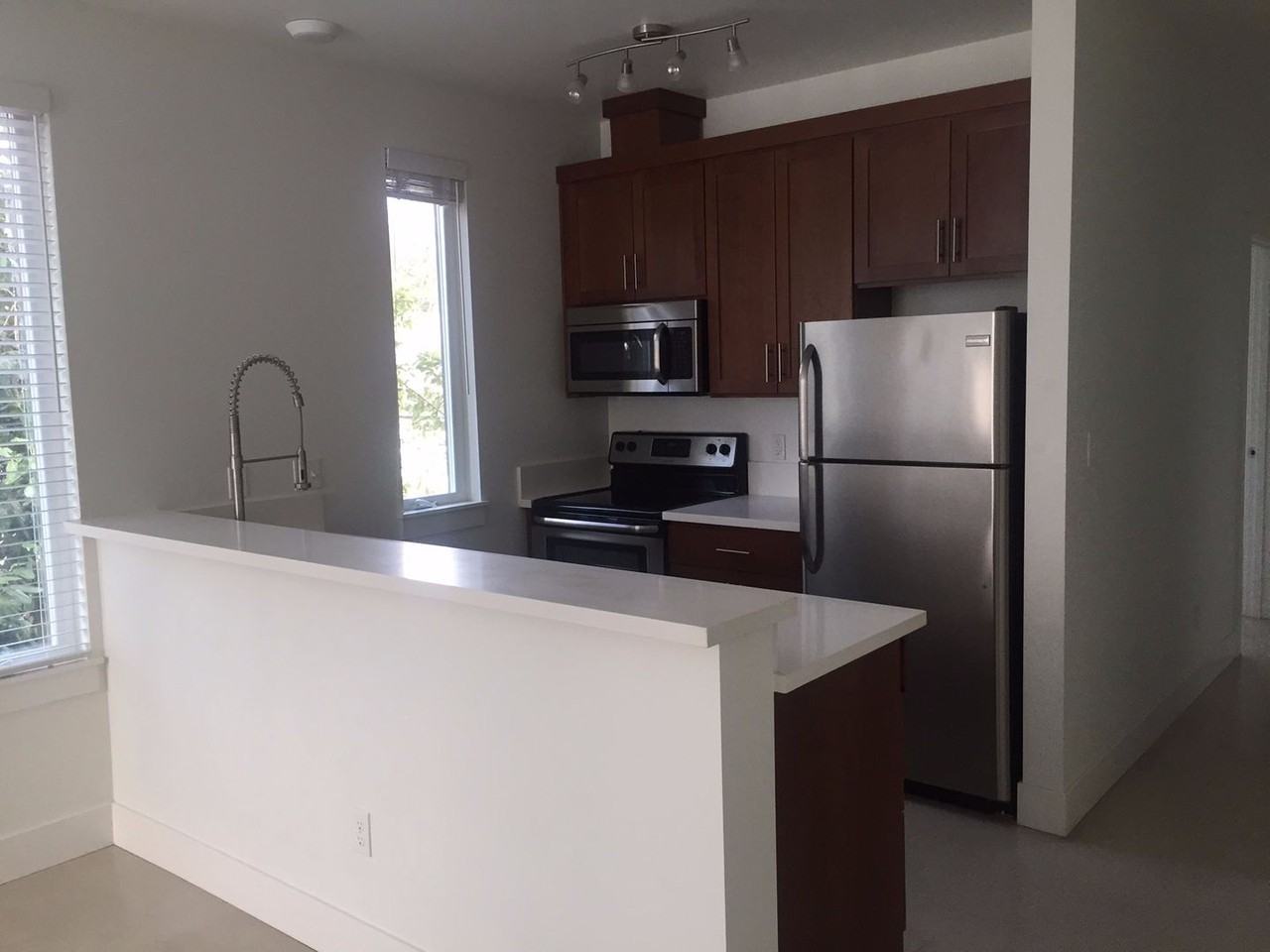 | 4525 N ALBINA AVE #402 | 1 bed | 1 bath | 465 sqft | $199 Moves You In OAC, $250 Cash Back at Move-In + Views of Mississippi Ave from the Rooftop Deck! - Open House Thursday the 13th from 3 - 5:30pm! Ellis Flats #402 4525 N Albina Ave. Portland, Oregon Fall Special: $250 Cash Back at Move-In! Tucked into the curve where N Mississippi Avenue turns into N Albina, Ellis Flats offers a calm, modern space just off the beaten track. Contemporary condo-grade finishes accent each minimalist flat with bright white walls throughout and many units have sunny, Southeast-facing balconies and polished concrete floors. Gourmet kitchens contain solid surface quartz countertops, designer cabinetry, stainless steel appliances including dishwashers and built-in microwaves, and undermount stainless steel sinks. All apartments have washers & dryers as well as individually-controlled air-conditioning and heating units. A large bike room is available onsite and the top floor features a gorgeous community deck with views of the West Hills and N Mississippi Avenue. Our very last stunning third floor two bedroom is available now. $199 moves you in for fully-qualified applicants and screening fees will be credited to your first month's rent upon approval. We are offering 6 and 12-month leases with options for month-to-month (ask for details). New residents will receive a discount at Locale, the charming coffee-shop-by-day-neighborhood-bar-by-night just down the street, $250 cash back at move-in and up to one month's rent free! Humboldt is a thriving neighborhood undergoing an energetic renaissance, with Ellis Flats claiming an ideal location amid some of North and NE Portland's most popular neighborhoods. The Alberta Arts District and N Williams Avenue are a short bike ride away and the coolest street in NoPo is a block and a half away: N Mississippi Avenue. Endless exciting restaurants, bars, popular boutique shops and local businesses are within easy walking or biking distance with The Cascade Campus of Portland Community College just down the street. Numerous bus lines and MAX are also close by while easy access to I-5 takes commuters in any direction. Capital Property Management www.capmng.com 503-305-4126 | ||