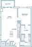 The home's comfortable bedroom includes a large closet. The full bathroom with dual entrances is accessible for both residents and guests and includes a double vanity and combination tub/shower. The in-apartment washer & dryer are housed in a dedicated closet located to the left of the entry.