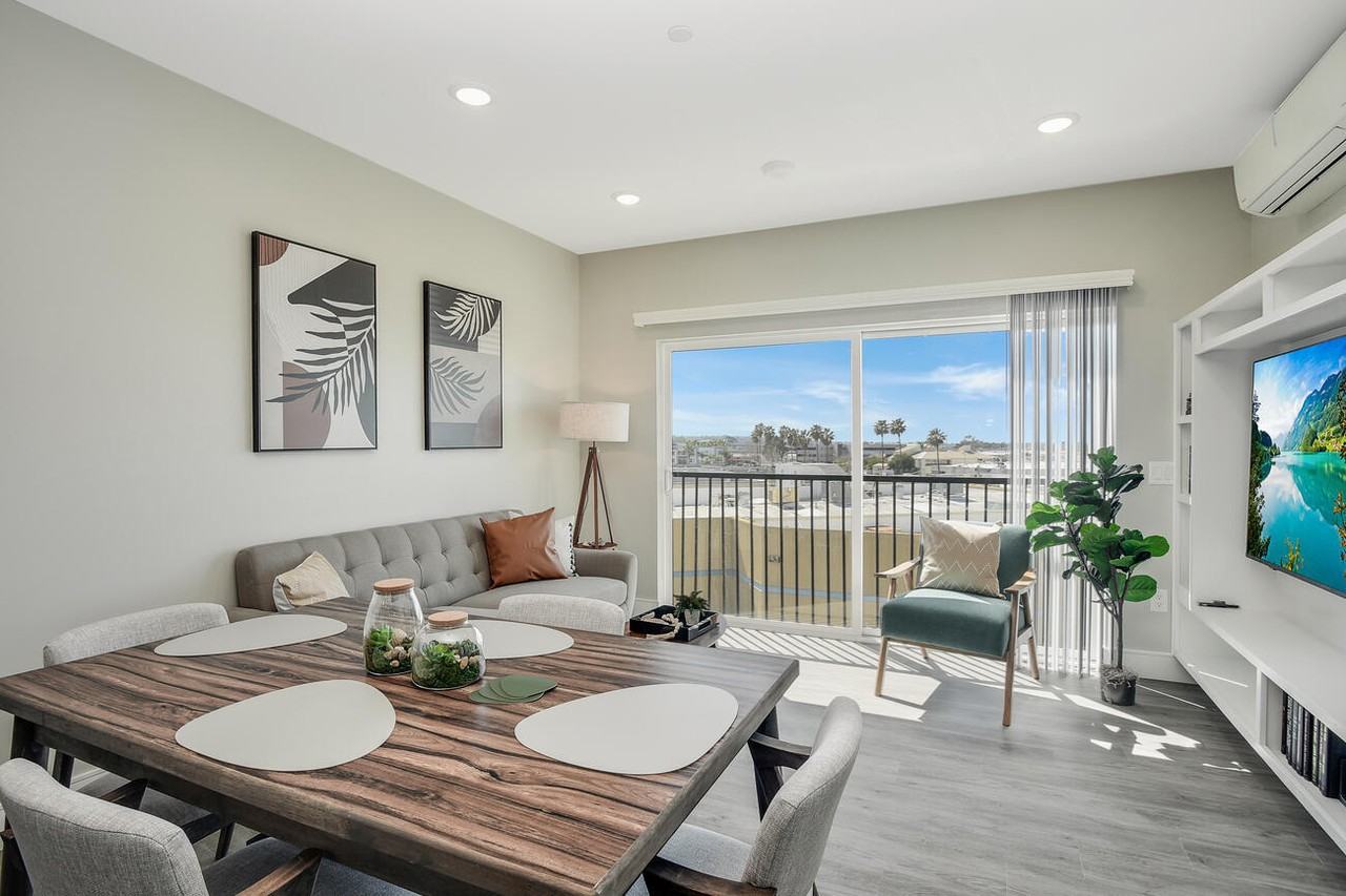 | The Carl on Lauretta - 7 | 2 bed | 1 bath | 626 sqft | xperience the epitome of luxury living at The Carl on Lauretta, steps away from USD. This thoughtfully designed unit comes fully furnished and is enhanced by the latest smart home technology. You'll enjoy the convenience of Amazon lockers, smart locks, and keyfob access. You'll indulge in the self-serve coffee, on-demand printing, and take the elevator to the rooftop deck overlooking Mission Bay and Sea World's fireworks show. Each of our brand-new apartments is equipped with high-speed fiber optic Wi-Fi and comes fully furnished with large smart TVs, a full kitchen, stainless steel appliance packages, an in-unit washer and dryer, desks with chairs, smart home capabilities, and modern finishes. Welcome to a world where modern elegance and breathtaking views redefine off-campus living. PROPERTY AMENITIES Elevator, Garage, High-speed internet, Package receiving service, Parking, Recycling, Sundeck, Wheelchair access, Printer On-site, Coffee On-site INCLUDED IN RENT Air Conditioning, Elec | ||