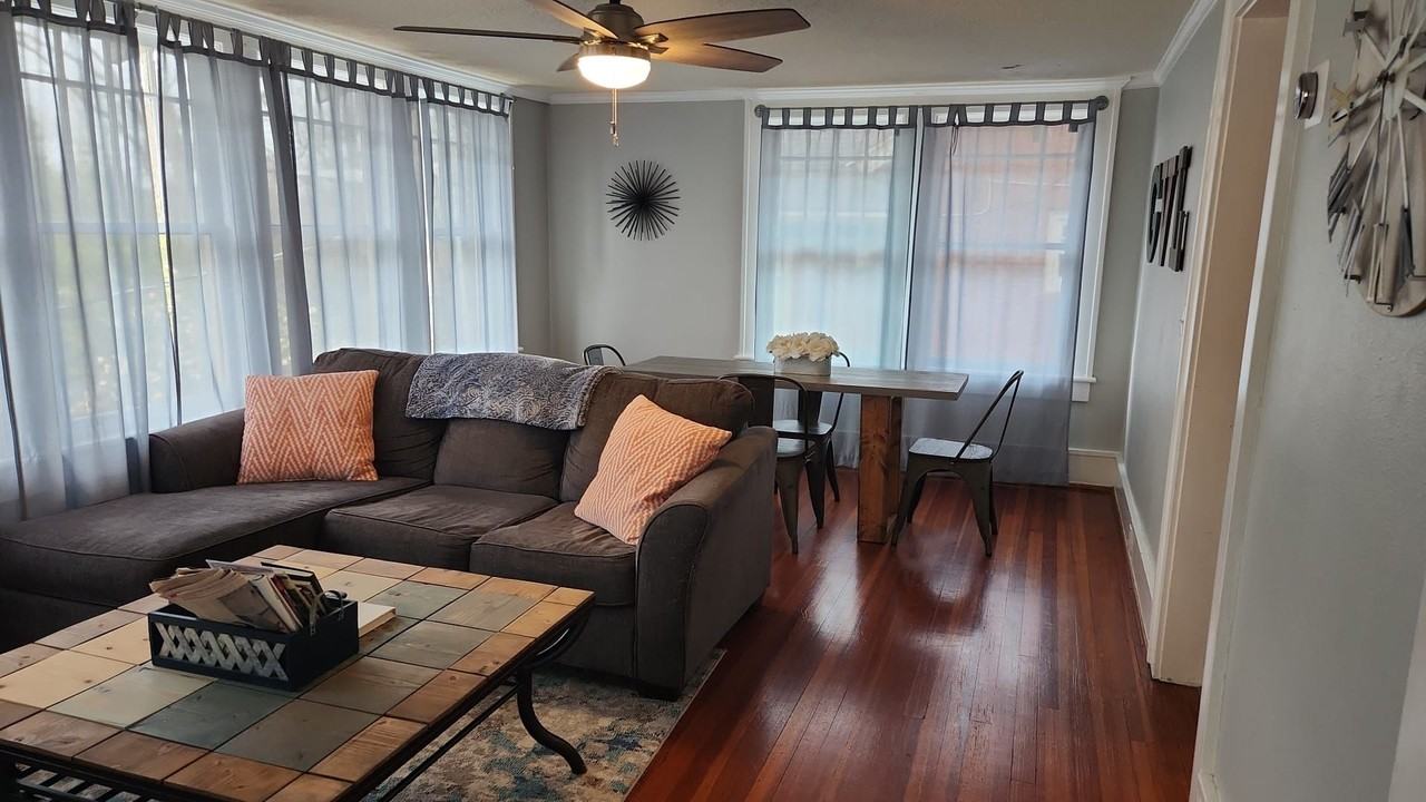 | 1BR/1.0BA | 1 bed | 1 bath | 850 sqft | Welcome to this lovely, fully furnished upstairs apartment located at 22 W Earle St. This recently updated 1 bed/1 bath apartment is located in a beautiful, quaint home in the Colonel Elias Earle Historic District, and conveniently located 0.8 miles away from downtown Greenville, about a 15 minute walk! This home is perfect for a traveling professionals, or an individual or couple having work done on their home or in the process of looking for a home. The home includes all appliances and furniture pictured. All utilities, including Netflix and internet, are included. There's a shared washer/dryer available to use, including laundry detergent and dryer sheets. You'll have everything you'd need for a start, including paper towels, toilet paper, dish soap, sponges, hair dryer, etc. Outside, you'll find a nice, shared front porch and small front yard. This home is located on a wide street with great sidewalks, where residents frequently walk with their dogs. There is driveway parking and street parking available. *30 Day Minimum* Please see "How to apply" and "Rental requirements" below. HOW TO APPLY ONLINE: 1. Provide your first and last name, email address, and phone number on the website. TEXT 205-498-5395 with questions. 2. Fill out online rental application and pay $25 for application/background check fee. ($25 fee waived for traveling professionals, reach out for more info). 3. We'll review application and background check, and reach out if any additional info is needed. 4. If approved, we'll send you the short term lease, info on paying deposits, and move in instructions. Move in Requirements: **30 Day Minimum Stay Required** ** at the moment** **No eviction within the past 7 years** **No criminal record** **Ask about our pet policy** **Prorated first month's rent + $250 Cleaning Fee + $350-$750 Security Deposit + $Pet Deposit (if applicable)** | ||