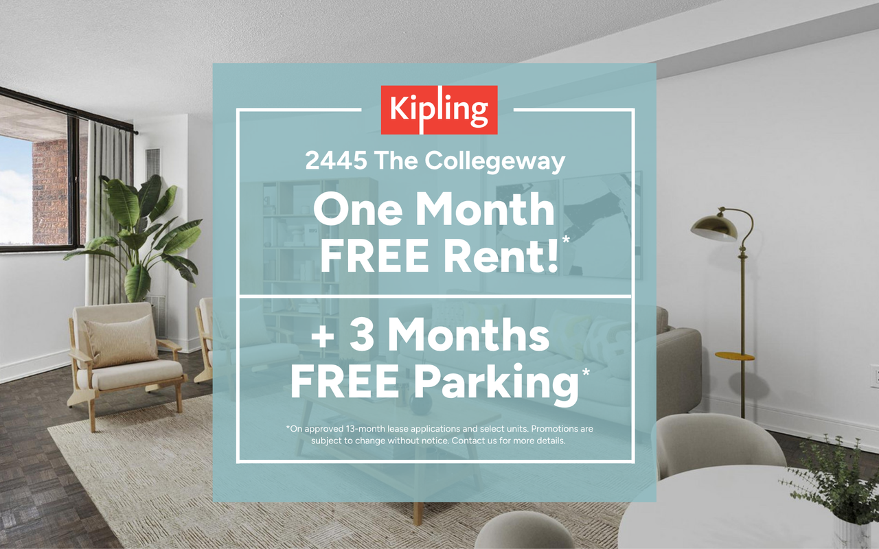 Receive 1 Month Free Rent + 3 Months Free Parking!*Located in a family-friendly neighborhood in Mississauga, 2445 The Collegeway offers newly renovated 1, 2, and 3-bedroom suites. These bright and spacious suites feature stainless steel appliances and new countertops with light finishes, making them the perfect place to call home. Residents enjoy a variety of amenities:On-site laundry facilitiesPet-friendly environmentParking available ($)Professional on-site managementOur prime location ensures you're close to essential services and activities. Food Basics is just a 5-minute walk away, Erindale Park is a 10-minute drive, and Erin Mills Town Centre is a 7-minute drive.*On approved 13 month lease applications and select units. Conditions apply. Promotions are subject to change without notice. Contact us for more details.
