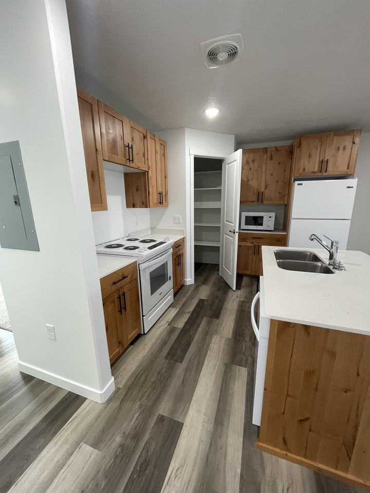 | Ken-5773 S 5th Ave. Pocatello, ID 83204 - A | 3 bed | 1 bath | 1,050 sqft | Beautiful, brand new 3 bed apartment in Pocatello! UNIT/COMMUNITY: Excellent location with more than enough parking and only minutes from the Idaho Zoo, ISU and all your everyday essentials. Each unit has 3 bedrooms and 1 (huge) bathroom! Built 2023, everything is brand new from the floors to the countertops to the appliances. Updated kitchen area with microwave included. Loads of kitchen storage with the beautiful cabinets in addition to the pantry. Recessed lighting throughout. Large bathroom with space to move around. Closets in each bedroom include built in organization. Laundry hook-ups in unit. PARKING: Each unit is entitled to 2 parking spaces. PET POLICY: Pet friendly with extra non-refundable pet fee and monthly pet rent. If applicable, please inquire for more details. TENANT RESPONSIBILITIES: • Security Deposit: Same as rent OAC. We also have an option for a deposit replacement program. Please inquire if interested. • Community Fee: $128 includes water, sewer, trash, and fibe |