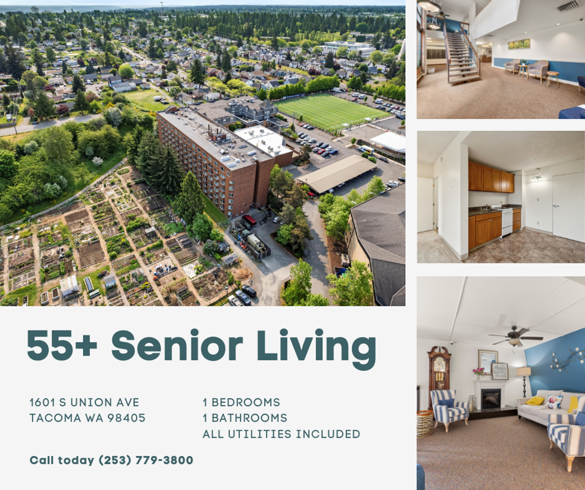 | PS One Bedroom | 1 bed | 1 bath | 555 sqft | $1,250 /mo | 2 units available | Life Manor is a 55+ Senior Living Community. Our “Parkside” Building is situated on the northern most part of our campus and nestles into Franklin Park just beyond. Recognized as one of Tacoma’s finest senior living! This brick-clad building features 7 stories with studio and 1 bedroom units that are warm and inviting and come complete with kitchenettes, full sink, refrigerator and cooktop. Rental prices include ALL utilities, Free Cable, Free Landline Phone service and more! This is the time in your life to enjoy yourself. Spend time with friends and family. Get together with friends for fun activities and fellowship. Jump on the Life Manor bus for an afternoon outing or shopping. Whether you are looking for spiritual, social, or recreational opportunities you will find it at Life Manor. www lifemanor com |