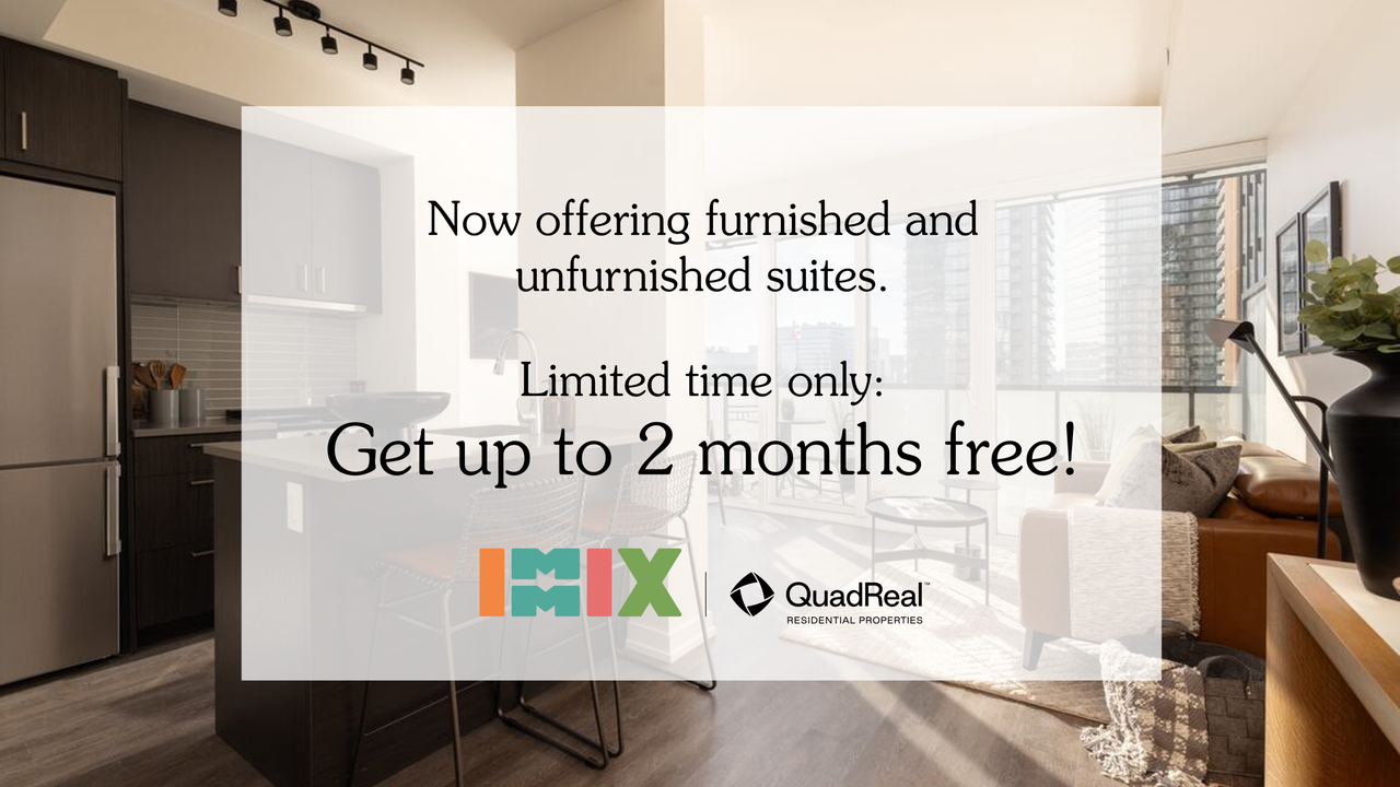 Thank you for your interest. We are offering virtual and in-person tours. Furnished and Unfurnished Suites Available Now! -- Discover the X Factor at IMMIX. Up to Two Months Free Rent*. Design-savvy rentals in the heart of Toronto, where bold style, smart amenities, and creative energy collide. Nestled in a prime location, our community offers a harmonious blend of comfort, convenience, and style. With an array of exceptional amenities, IMMIX provides an ideal living experience for anyone seeking a vibrant community atmosphere. Situated in a desirable location, IMMIX offers easy access to everything you need. From fine dining establishments to trendy cafes, shopping boutiques to entertainment venues, you'll find an abundance of options just steps from your front door. The nearby parks and green spaces provide a peaceful retreat from the bustling city, allowing you to enjoy nature's tranquility. Discover the perfect place to call home at IMMIX. Suite Features: - Furnished and Unfurnished Options - Whirlpool Front Loading Washer/Dryer - Generous 8'6" Ceilings in Most Living Areas - Hardwood-style Luxury Vinyl throughout - Highly Efficient Fixtures for Smart Water Usage - Individually Climate Controlled Heating and Cooling for Year-round Comfort - Whirlpool Stainless Steel Package: Front Control Electric Range, Bottom Freezer Refrigerator, and Built-In Dishwasher - Undercabinet Lighting - Double Sink Vanities** - Large Windows and Expansive Balconies - Spa-Inspired Bathrooms with Oversized Porcelain Matte Tiles and Modern Soaker Tubs - Smart Locks on Entry Doors - Quartz Slab Counters - Two Timeless Colour Palettes to Choose From: Oyster & Mocha - Upgraded 30” Appliances Including a Fisher & Paykel Refrigerator/Freezer in 3 Bedroom Suites - Custom Window Coverings - Pet Friendly - Soaker Tubs** - Internet Ready Suites with Rally **In Select Suites Community Amenities: - PowerFuel Performance Zone: Official Hammer Strength ® Training Facility - Paws & Suds Station - InnoHub Co-working Space - The Hive Co-working Space - North and South Yonge Lounges - Brainstorm Hub Meeting Room - Cabana Lounge - Aqua Deck - Yoga Den - SpinScape Studio - SkyScape Lounge - BBQ Terrace with Outdoor Seating - Locally Curated Art Collection - Underground Parking - Smoke-Free - Common Area Wi-Fi - Smart Parcel Lockers - QuadReal+ Home Mobile App - Professionally Managed by QuadReal *Terms and Conditions Apply. Select Floorplans and Lease Terms. Please Contact for More Details. Our Net Zero Commitment: QuadReal is committed to net zero carbon by 2050 across its global portfolio in alignment with science-based carbon reduction goals. QuadReal’s net zero strategy builds on its original 2016 mandate to achieve an 80 per cent carbon reduction goal across its Canadian operations. Since 2016, QuadReal has demonstrated leadership in reducing carbon emissions across its Canadian portfolio and will use key learnings to accelerate and deepen its sustainability goals in both its Canadian and international assets. You can learn more about our net zero strategy at quadreal com