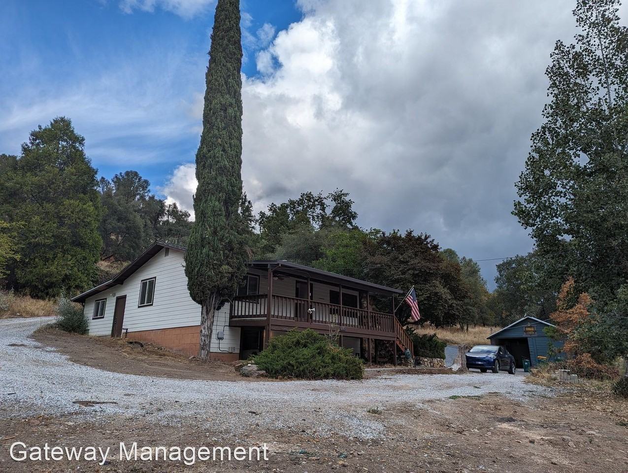 Overlooking Smith Flat near Hwy 50 & oldtown Placerville 2/1 with workshop, deck - Property Address 2161 Smith Flat Rd - 2161-S | Placerville, CA 95677 Available: Now Offered By Gateway Management | (415) 550-7070 Huge 250 sqft cement deck fronts this terraced hillside home a short 3 miles from old town Placerville in the historic Smith Flat community now becoming the burgeoning Gateway to Apple Hill. Air Conditioning with powerful heat pump technology provides heat for cold nights as well keeping cool during the day. Kitchen features granite counter tops with lots of all wood cabinets and drawers, flat top electric stove, French door refrigerator with filtered water and ice cubes in the door. Large detached garage adjacent to Smith Flat dead end turnaround. Near the backydoor is a covered carport at the back makes loading and unloading a breeze. There is plenty of outdoor space for lovely foothill evenings and several levels to this sloped site including easy private staircase access to the El Dorado Trail [http eldoradotrail com ] Bathroom has fan, window, large linen closet shower/tub, medicine cabinet Great room with fireplace connects dining area and living room to the large covered 300 square foot deck overlooking the front yard and highway 50. Floors are pergo like wood laminate and tile. Off-white walls with barn wood accents. Living room ceiling features considerable recessed LED lighting. The whole house is well insulated and stays cooler in summer and warmer in winter than average. There is a new powerful heat pump that allows Downstairs has additional storage and a washer/dryer. Two bedrooms are an average size with large closets with extra shelf build-ins. Windows are double pane for extra quiet. EASY PARKING Lots of easy parking for guests on site or in the cul de sac. Find the El Dorado Trail up the gated staircase at top of this property. . NEIGHBORHOOD The property is at the end of Smith Flat Road next to Caltrans open space and just below the El Dorado Trail, a popular hiking, biking and equestrian trail. Smith Flat has two convenient highway 50 offramps [49A & 49B] and is the main gateway to Apple Hill and Camino wine country via Jaquier connection to Carson Road. Open most days is the nearby historic Smith flat House for lunch, dinner & brunch. More about Smith Flat here: https www pinterest com colomaspring smith-flat-exit-49-hwy-50 Smith Flat was a well known and historically important stop on the Carson Trail during the early wild West pioneer days of wagon trains and stage coaches. Near here was a structure responsible for collecting a toll from the adventurous souls traveling this main Trail over the Sierras. Smith Flat marks the beginning of a steep rise to the Sierra Nevada mountains and Echo Summit which overlooks the Lake Tahoe Basin. Today Smith Flat residents are increasing surrounding hills of grape vines. The former Blue Lead mine with an opening in the Smith Flat House and a tunnel that goes all the way to the South Fork of the American River provides the year-round headwaters to Hangtown Creek which flows next to Placervile's Main Street 3 miles further down the hill. The main parking lot for the El Dorado Trail which extends up the mountain to the snow line in Camino or all the way down to Shingle Springs is located here. The Placerville Airport is on the ridge across Highway 50 off our Exit # 49.. TERMS: One year lease then month to month Contact Chris at Gateway Management 415-550-7..