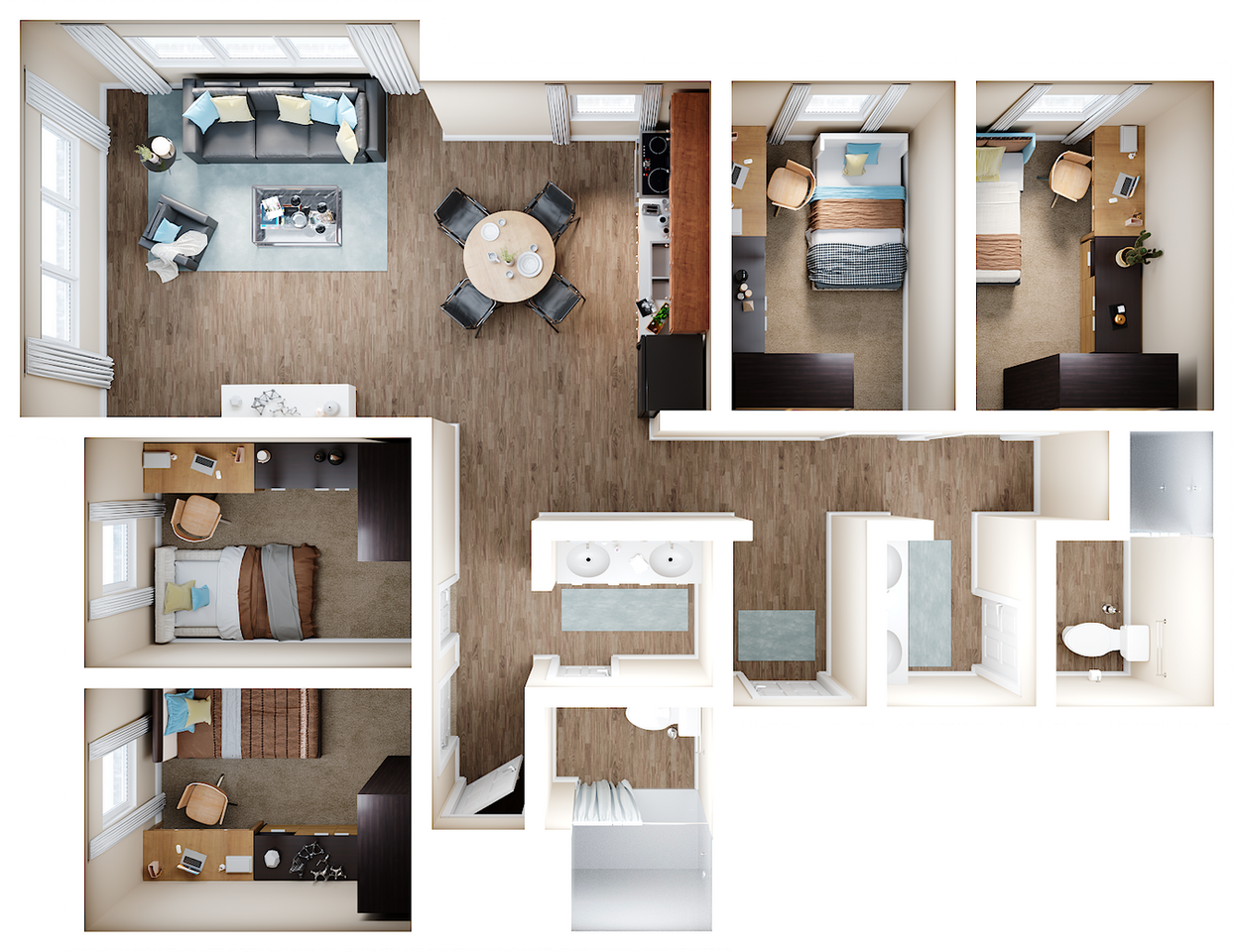 4 beds