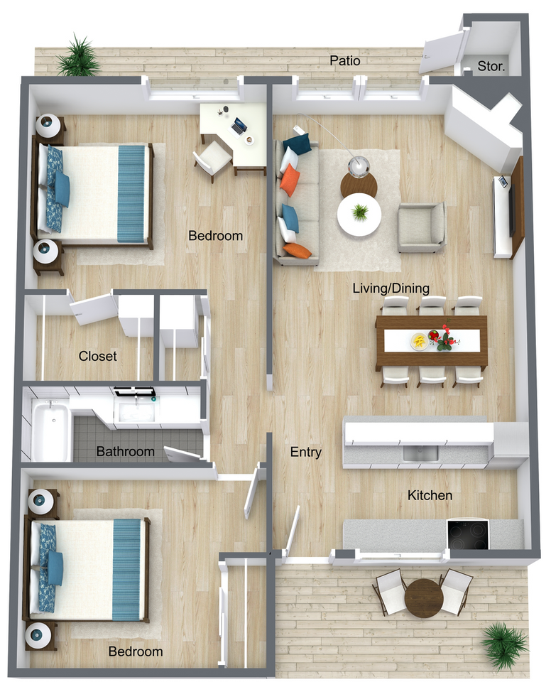 The average monthly rent for 2 bedroom apartments in Civic Center, Stockton is down 3.61% compared to last month and down 12.46% year-over-year.