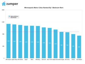 The Zumper Minneapolis Metro Report analyzed over 7,000 active listings in April across 13 metro cities to show the most and least expensive…