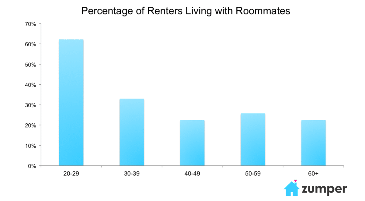 - 62% of millennials surveyed reported that they were currently living with roommates