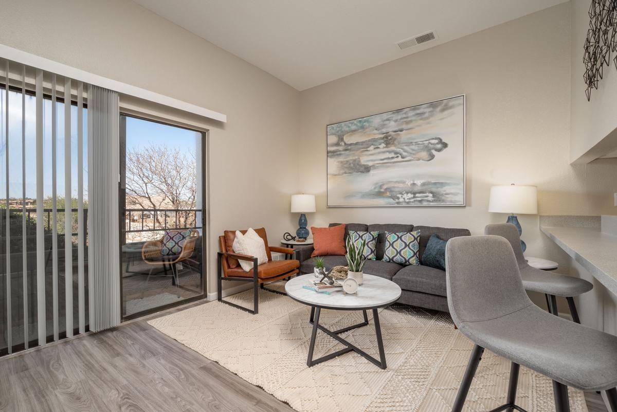 Find your new home and your sense of adventure at Puerta del Sol Apartments in fascinating Albuquerque! With wood-burning fireplaces, generous storage space, and fully-equipped kitchens, you can eat well and live well in any of our 1 or 2 bedroom apartments. Conveniently located on the west side of Albuquerque, our apartments are within walking distance of restaurants and grocery stores, not far from Desert Greens Golf Course and Cottonwood Mall, and just a short drive from your next adventure. In under five minutes, you can be hiking in Piedras Marcadas Canyon or take a twenty-minute drive to discover Petroglyph National Monument or explore Old Town. Come home and take advantage of our fitness center and heated swimming pool and then rest and rejuvenate while enjoying the view from your private covered balcony. With so much to do and discover nearby, let Puerta del Sol apartments help you combine your love of exploring beautiful landscapes with a convenient location and cozy place to call home.