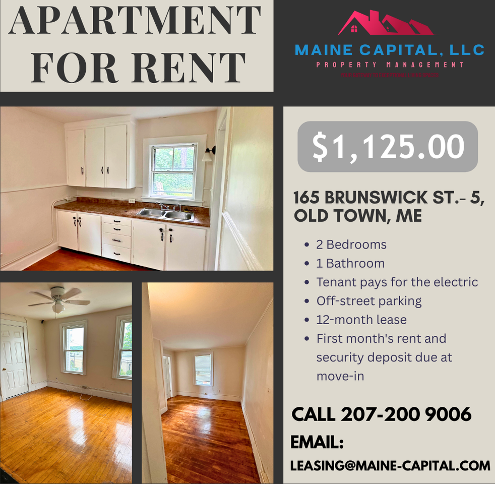 Bright 2-Bedroom Apartment in Old Town! This bright and spacious apartment features a well-designed layout and off-street parking for your convenience. The landlord covers most utilities, including heat, water, hot water, landscaping, and snow plowing, making for a hassle-free living experience. Tenant responsibility includes electricity. - 2 bedroom unit - Tenant pays for the electric - Off-street parking - 12-month lease - First month's rent and security deposit due at move-in Don't miss out on this opportunity! Disclaimer: Certain images in this listing contain AI-generated virtual staging to illustrate potential layout and design possibilities. Furniture and décor shown are for visualization purposes only. This is not a furnished unit unless explicitly stated.