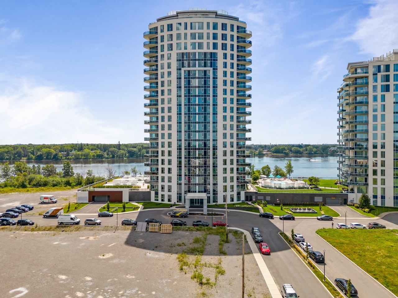 Welcome to unit 307 of the prestigious Aquablu phase 2 building. Enjoy West facing views where the sky lights up during sunset hours as well as beautiful divisions making sure that every space is used at its fullest extent. Large balcony, two garage spaces and so much more. Fully furnished option available. BUILDING FEATURES AND AMENITIES Ideally located in the sought-after community of Sainte-Dorothée, with a south-facing exposure and 1,000 feet of shoreline on Rivière des Prairies * Direct access to a multi-function walking and cycling path * Superior reinforced- concrete construction * Two-storey lobby with 24-hour concierge service * Two elevators * Three-level heated garage with 2 interior parking spots * Secure main entrance lobby with card access and telephone entry system * One-of-a-kind outdoor water features: spa, private cabanas, and fountains * Outdoor lounge and waterfront terrace with quality furniture by Jardin de Ville * Private boat slips * Fully glass-enclosed yoga and pilates studio with panoramic water views * Spacious reception lounge for private events, with kitchen and access to the outdoor terrace * Guest suite * Access to heated indoor and outdoor swimming pool, spa, sauna, private boat slips and fitness center with massage room