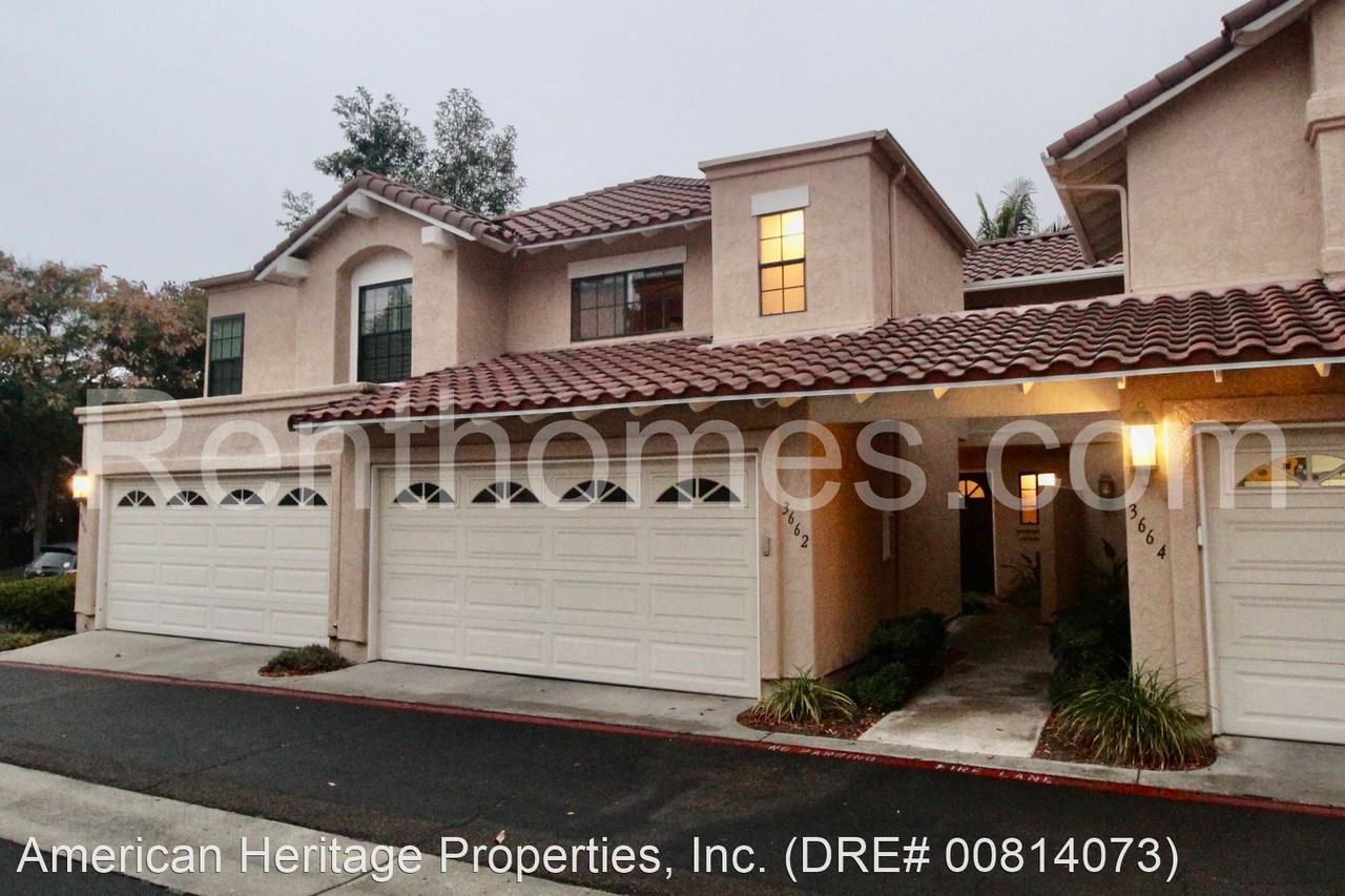 Carmel Valley, 3663 Caminito Cielo Del Mar, Fireplace, Fncd Yd, 2 Car Garage, Community Pool, Spa and Tennis! - Living room/dining room has vaulted ceilings, wood floors, gas log fireplace and direct access to the rear yard. Kitchen has wood floors and ceramic tile counters. Half bathroom downstairs. Bedroom number one upstairs is currently set up as a den without a closet, but owners willing to install a closet if needed. Upper hall bathroom has ceramic tile floors and a tub shower/combo. Primary bedroom has a ceiling fan, two closets with mirrored wardrobe doors and closet organizers, double sinks and a tub/shower combo. Attached two car garage with an opener and overhead storage racks. If you are interested, please drive by the home to see if the location and neighborhood meet your needs, then call American Heritage Properties at 858-695-9400 and we will be happy to set an appointment to show you the home. To see our complete listings or to apply now visit our website at www renthomes com No Pets Allowed