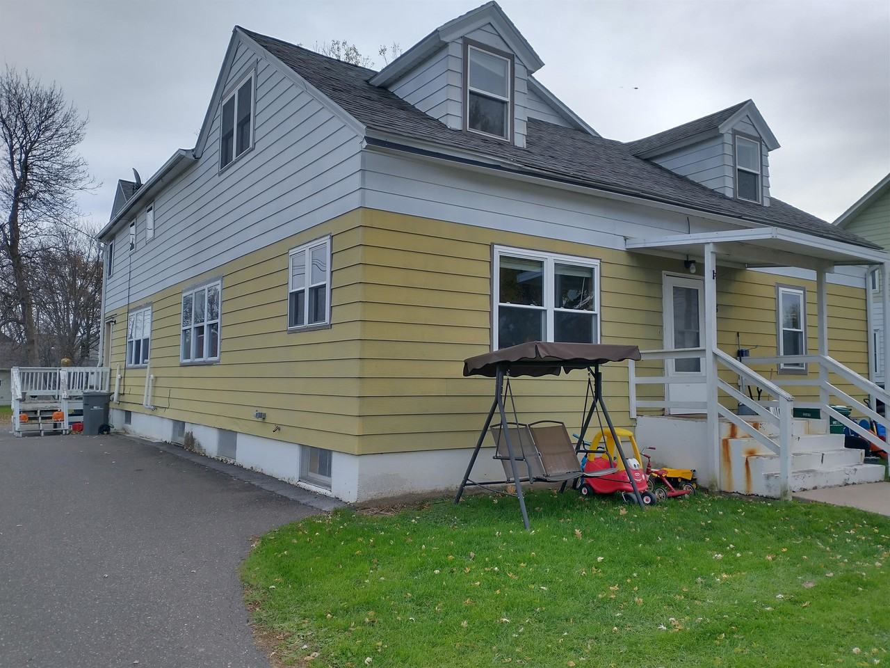 Nice size rooms in this apartment. Unit 1 of 3 in a large tri-plex. One bedroom on the main and 2 upstairs. NOTE: The one bedroom is off the side when you come up the steps so they are not totally private to get in and out but they are nice size rooms. Large eat in kitchen with a pantry. Washer and dryer included. Trash included, tenant pays elect, gas and water. Negotiable to reduce rent in exchange for mowing and snow removal unless other arrangements are made beforehand.