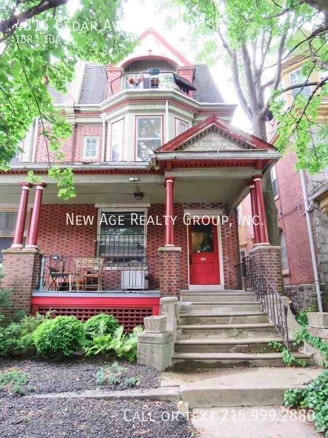Spacious and sunny 1 bedroom apartment available on the third floor of a Converted Victorian Walk-Up in desirable Cedar Park area of University City. Upon entering the apartment, you are greeted by a generous size living room, with bedroom and bathroom located in the rear of the unit. The bathroom is fully tiled, and a full bathroom. Close to Upenn, and Drexel Universities in addition to the shops and restaurants along Baltimore Avenue. Catch the Trolley for an easy commute into Center City! Shared Laundry on-site Heat/Hot Water Included Tenant only pays for electric and $25 per month for water! Tenants must obtain Renters Insurance! Pet Policy: Cats OK with $300 non-refundable pet fee. All New Age tenants will be automatically enrolled in a Resident Benefits Package (RBP) for $25 per month, which includes $5k in property damage reimbursement, credit building through timely rent payments, a resident rewards program, and so much more! These benefits are designed to improve your living experience and put money back into your pockets. All information about this package can be found at https www newagerealtygroup com tenant-hub Please Note: To process the applications a holding fee equal to one month’s rent must be paid after submitting the application(s). Upon approval the unit will be removed from the market & the holding fee becomes the security deposit for the unit moving forward. If your application is declined, we will refund the holding fee within 2 business days. We collect first month’s rent, and a security deposit for all our properties. These balances MUST be paid in certified funds. To schedule a showing, please visit our website at https www newagerealtygroup com vacancies or send an email to **** for more information.
