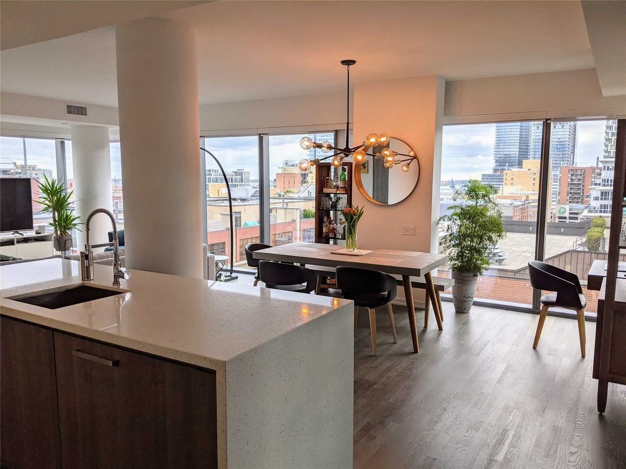 Incredibly spacious 1200+ sq ft south-east corner suite w/two balconies! Wide open living and dining w/floor to ceiling windows, tons of natural light, 9' ceilings, slick kitchen w/integrated appliances, quartz counters, and huge island. Hardwood throughout, split bedroom layout, 2 full baths, tons of storage. These spaces don't come along often! Views over the st lawrence market neighbourhood, steps to both st james and berczy parks. Extras:1 parking spot and 1 storage locker included. 24-hr concierge, outdoor pool, roof deck w/bbq's, gym. Steps to financial district, st lawrence market, king streetcar at your doorstep. Absolutely fantastic neighbourhood. *Murphy bed in second bedroom has been removed!* *I'm a realtor specializing in Toronto rentals and am posting with permission from the listing agent, to help attract a great tenant. *