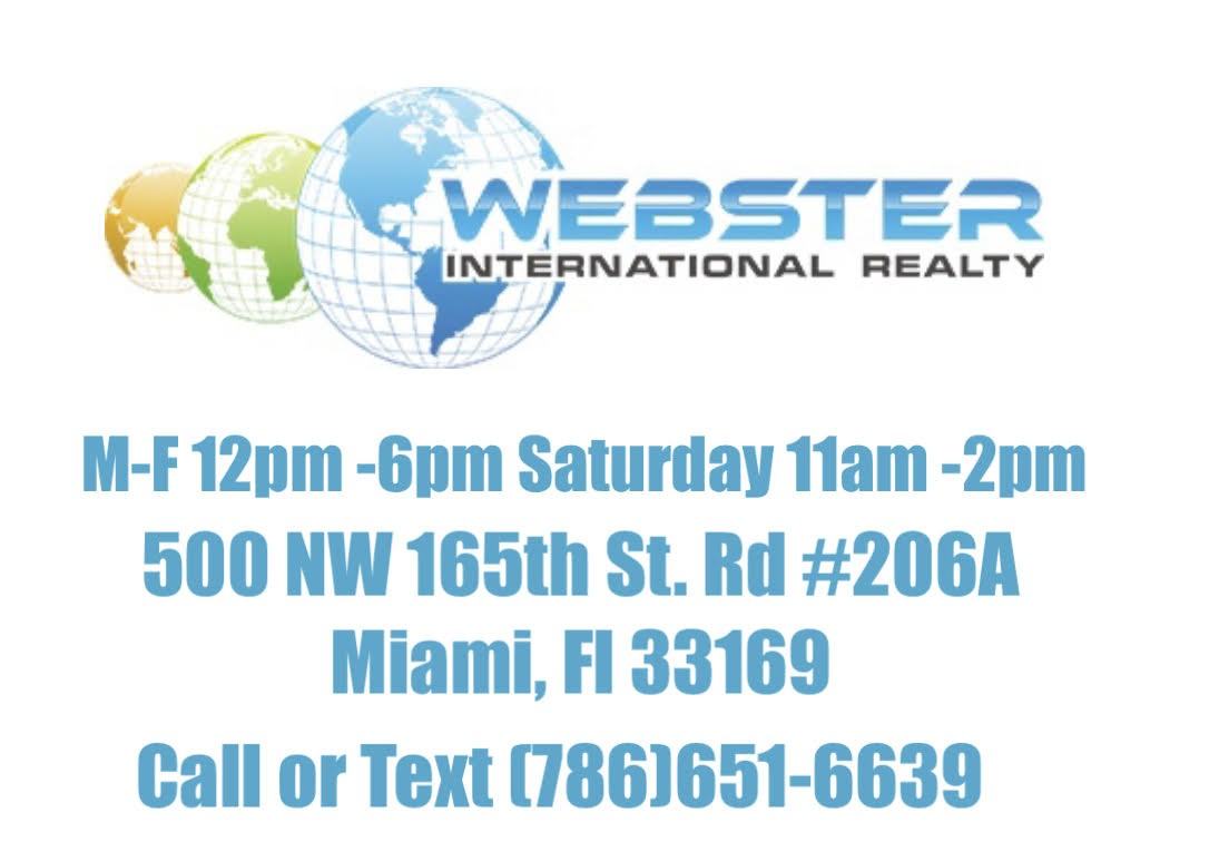 Please visit our office Today to Discuss Tours, Leasing Options and Our Move in Specials. M-F 12pm - 6pm Sat 11 a.m. - 2 p.m. Webster International Realty 500 NW 165th St, Rd Suite #206a Miami Fl, 33169 TEXT NOW!! (786)651-6639. Pets Welcome No Credit Check Move in Specials Section 8