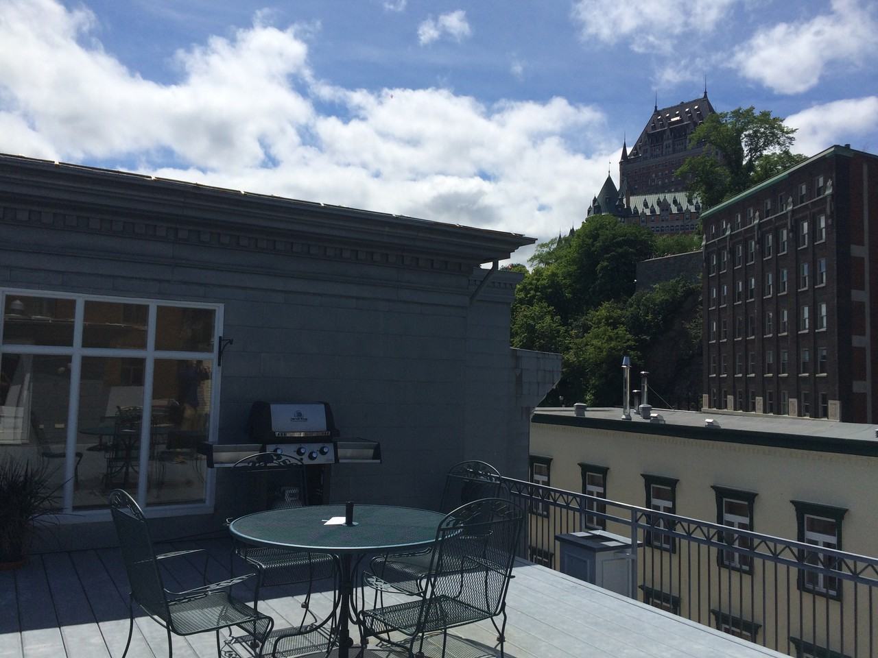 (e nglish description below) Condo HAUT DE GAMME - Vieux-Québec - (Quartier Petit-Champlain) 100% Meublé Premier arrivé premier servi Récemment rénové avec grand souci du détail et du caractère historique. Situé au cœur du Quartier historique, au pied du Château Frontenac. Rue piétonne avec galeries d’art, restaurant, antiquaires, boutiques. Immense Terrasse sur le Toit avec vue sur le Château Frontenac Foyer au bois Mur de brique (original de 400 ans) Plancher bois, céramique chauffante dans la salle de bain Air-Climatisée Douche italienne avec plancher chauffant et cascade d’eau Bain séparé Laveuse-Sécheuse Lave-vaisselle Beaucoup d'éclairage Au dernier étage (étage semi-privée ) Ascenseur et accessible au gens a mobilité réduite 1195 par mois. Disponible septembre 2021 NOTE- aucun fumeur, aucun animal et aucune cultivation autorisée Pour plus d'informations contactez ENGLISH MESSAGE High end Condo Old Québec City (Petit-Champlain area) Fully furnished First arrived, first served Gorgeous condo entirely furnished and equipped Recently renovated with high attention to details and historic character. Huge roof top terrace with View on the Château Frontenac Close to the River and Petit Champlain, in the heart of Old Quebec City. On a pedestrian street, with lots of arts Gallery, restaurant and antique stores. Wood Burning fire place Exposed brick wall (original 400 years old) Wood floor and heated ceramic floor Air conditioning Italian shower with waterfall and heated floor separate bath tub Air-Conditioned Washer and dryer Dishwasher Lots of lights Top floor - semi-private floor (only one neighbor) Elevator and accessible for those with reduce mobility Entirely furnished and equipped Electricity and hot water included 1195 per month. NOTE: -no smoking – no animal- no growing pot allowed in the condo - Available sept 2021