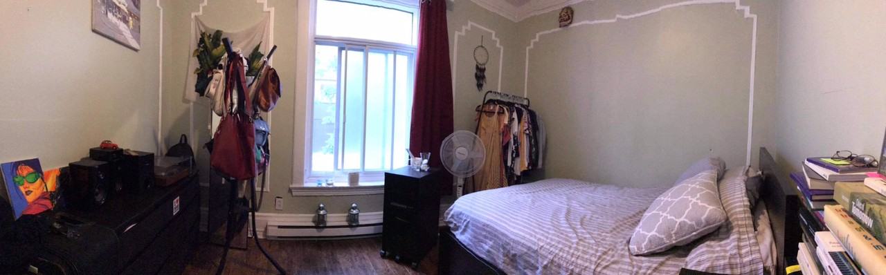 Room for rent in 3 1/2 apartment already furnished with fridge, oven, couch, and bilingual roommate, the only thing not furnished is the room for rent itself. Located across the street from Atwater metro station, and Alexis Nihon in which includes essentials such as IGA, Pharmaprix, Dollarama, Canadian Tire. A minute walk from Adonis on St Catherines, a 10 minute walk to Concordia University, and a 15 walk to McGill University. The room faces the historical Forum, as well as a local cafe by the name of Shaughnessy. This location makes it easy to get around, whether it is by metro, bike, or car, being at the cusp of downtown Montreal. Chambre à louer dans un appartement 3 1/2 déjà meublé avec réfrigérateur, four, canapé et colocataire bilingue, la seule chose non meublée est la chambre à louer elle-même. Situé en face de la station de métro Atwater et Alexis Nihon dans lequel comprend des essentiels tels que IGA, Pharmaprix, Dollarama, Canadian Tire. À une minute à pied d'Adonis sur St Catherines, 10 minutes à pied de l'Université Concordia et à 15 minutes a pied de l'Université McGill. La chambre fait face au Forum historique, ainsi qu'un café local du nom de Shaughnessy. Cet emplacement permet de se déplacer facilement, que ce soit en métro, à vélo ou en voiture, étant à l'orée du centre-ville de Montréal.